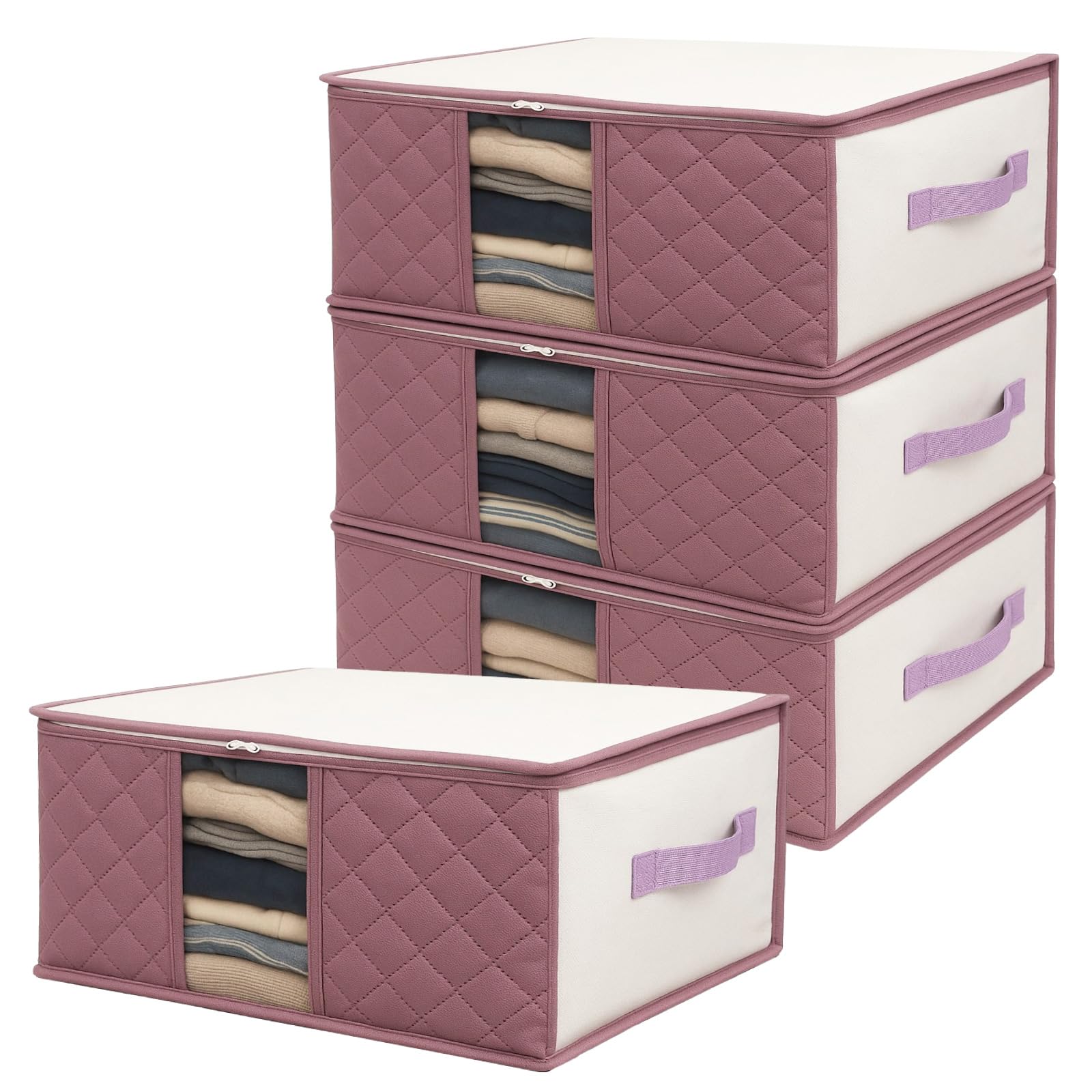 【数量限】衣類収納ケース 4枚組 通気性の良い 厚手不織布製 洋服 収納ボックス 衣装ケース 前面活性炭シート入り 収納袋 クローゼット 押し入れ 持ち手 クリア窓付き 使わない時は小さく畳める(中芯無し)