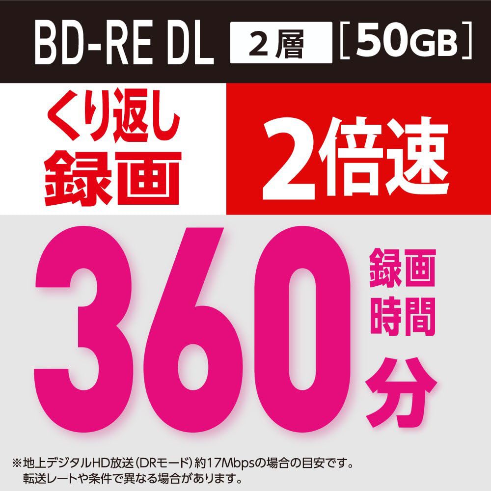 くり返し録画用ブルーレイディスクBD-RE DL/1-2倍速記録対応/2層50GB/インクジェットプリンタ対応/ホワイト・ディスク