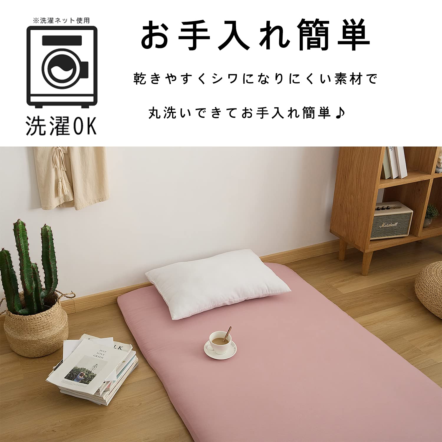 ご家庭の洗濯機で丸洗いOK!さらに綿素材に比べ、すぐに乾く!