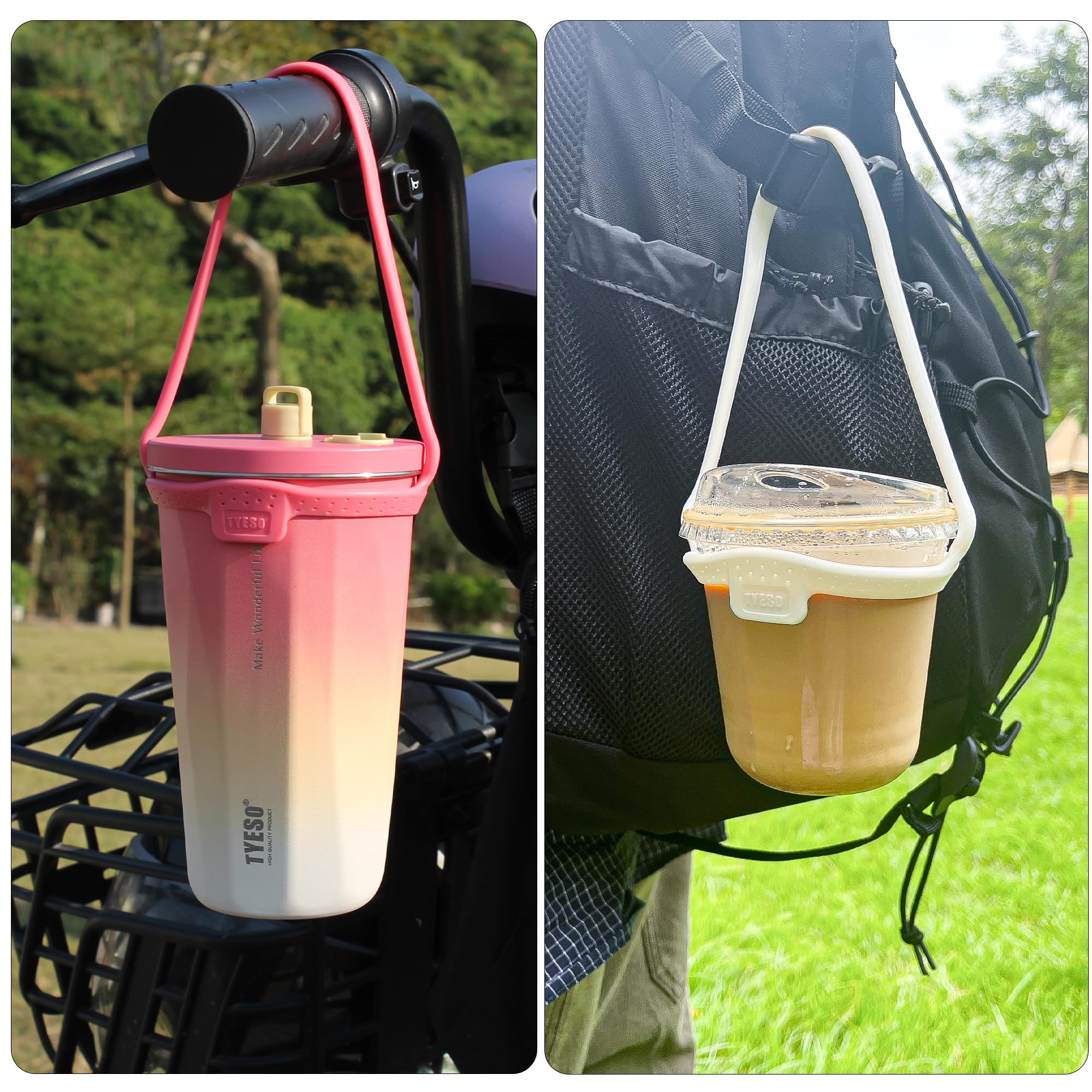 ドリンクを楽しむ:メールしながら、電話しながら、買い物しながら、通勤しながら、サイクリングしながら、歩きながら、ストロー ホルダー付き両手を自由にしてお気に入りのドリンクを楽しもう、コーヒー、ジュースドリンク。飲み物を持ち運ぶことで足手まといになることはありません。