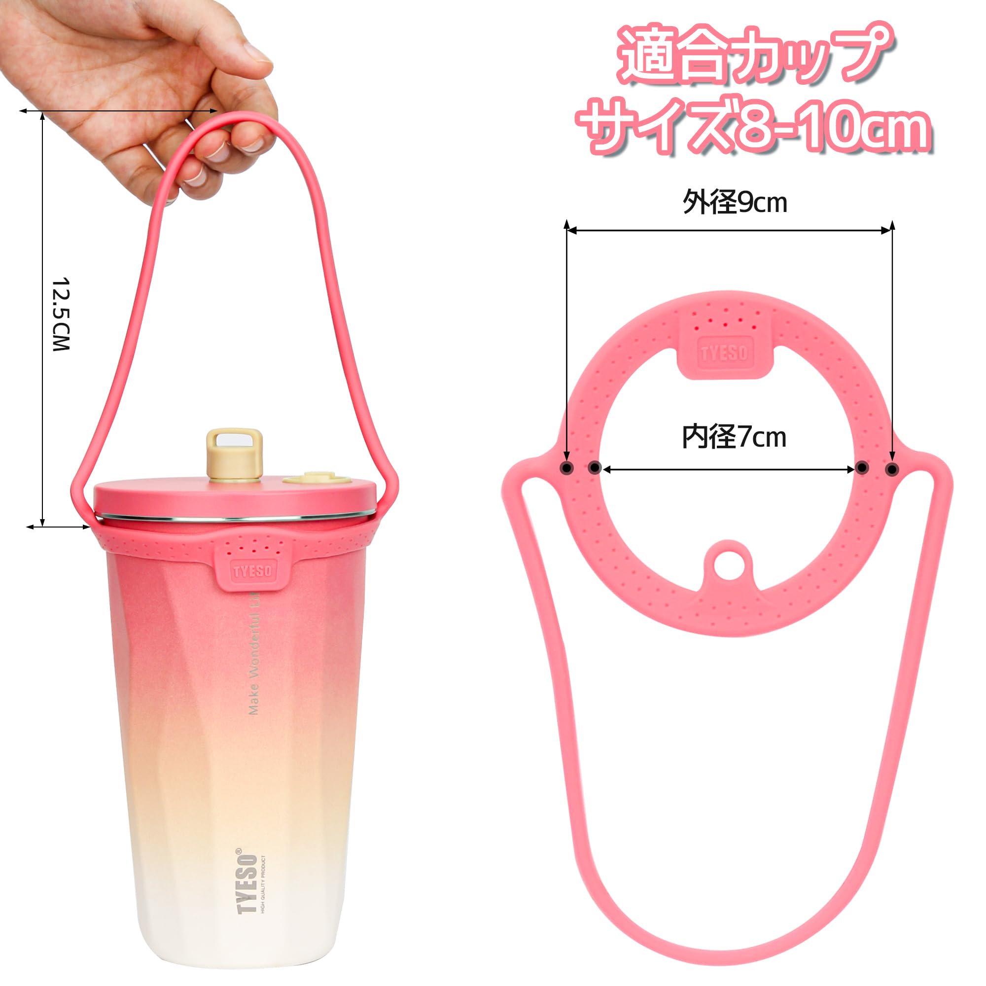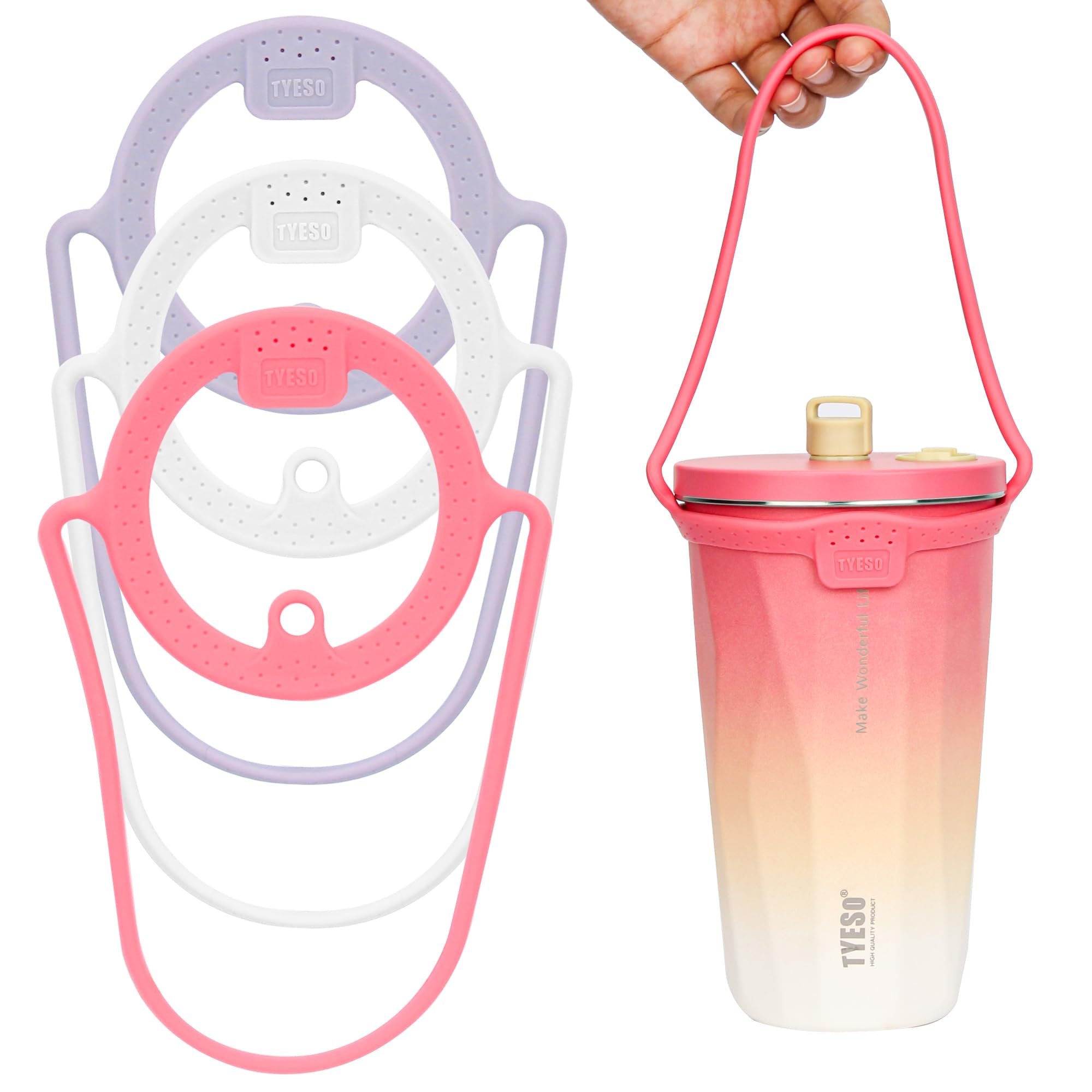 TYESOドリンク カップ ホルダーシリコン製ストロー キャリア ホルダー 手付き 持ち歩きタンブラー(ピンク/白/紫)