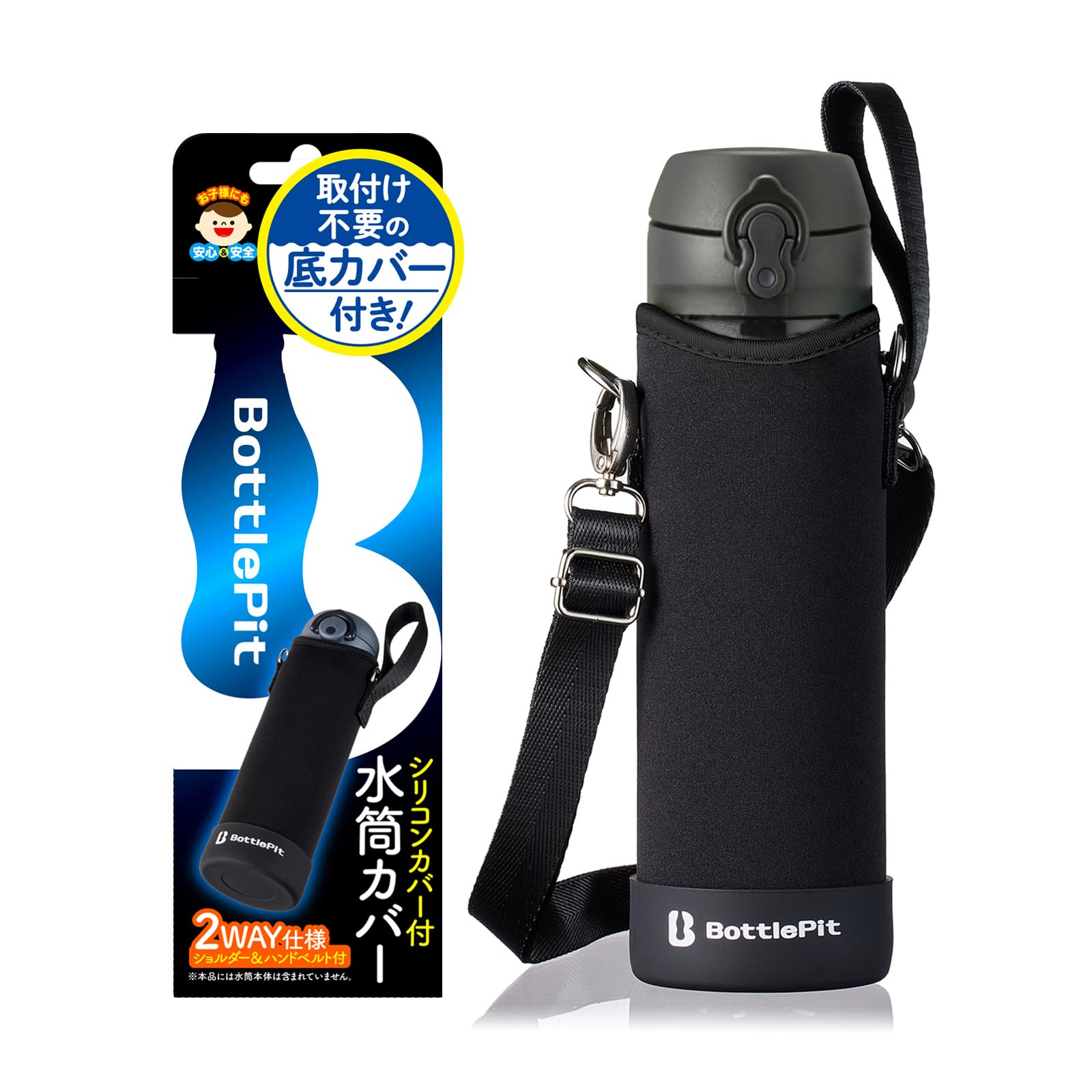 取付け不要の底カバー付き 水筒カバー 500 ml用(ブラックブラック)