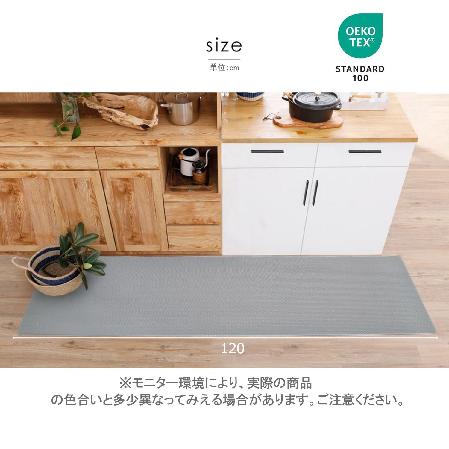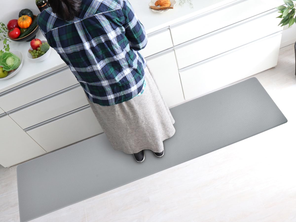 キッチンマット 拭ける 厚さ8mm 踏み心地いい フカフカ グレー 120 はっ水 防汚 低反発 クッション 洗濯いらず 台所 さっと拭くだけ