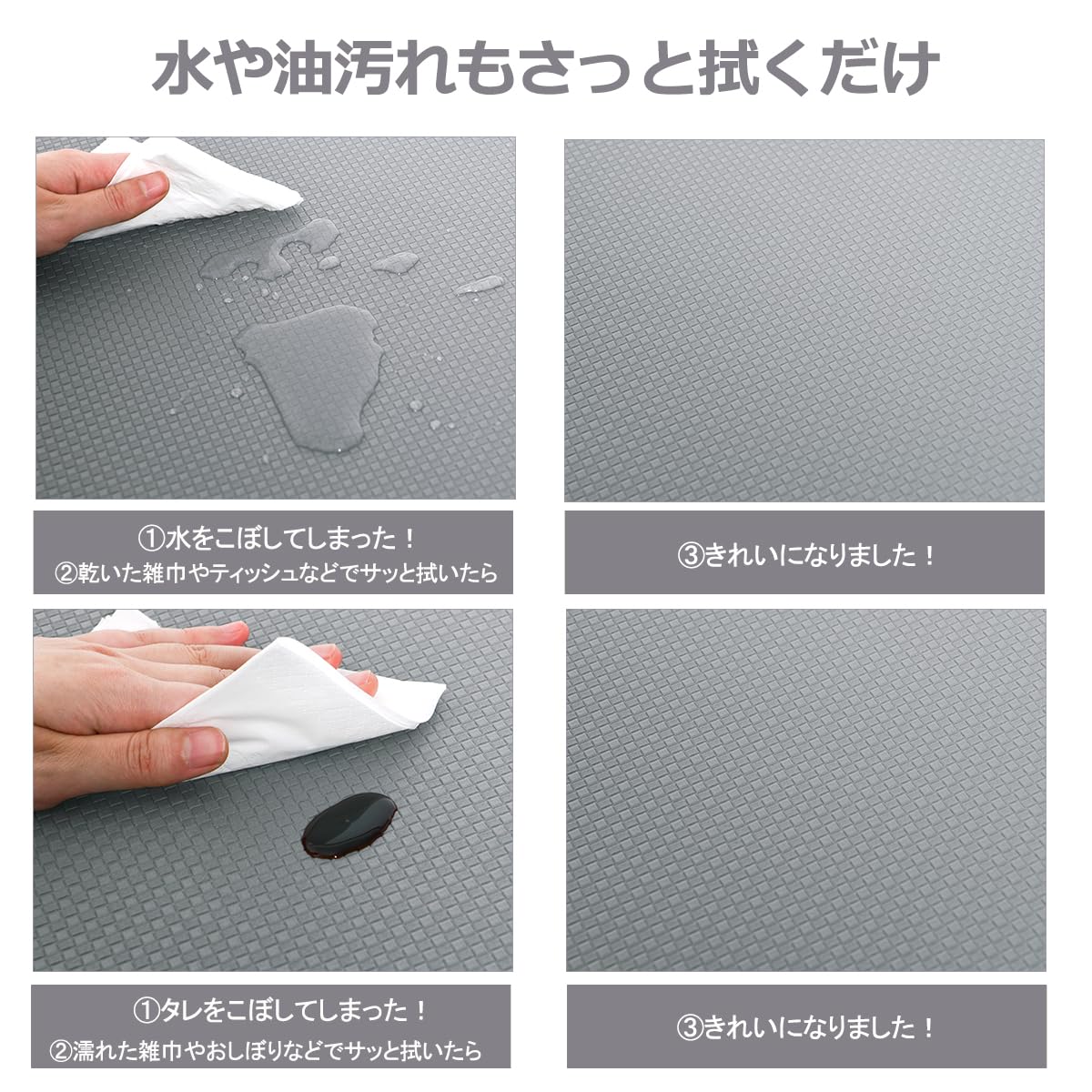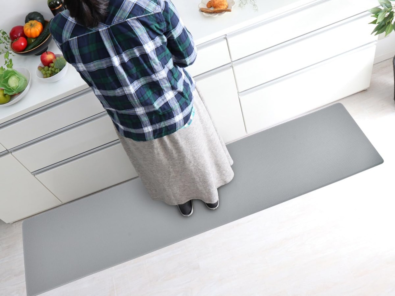 【衝撃緩和】柔軟性のいい材質を使用しているし、8mmの厚さで低反発のクッション性があってフカフカ〜適度なクッション性を備えています。踏み心地がよく、足裏にかかる体重を分散し、調理の時、足腰の疲労を和らげることができ、長時間の家事をしても快適です。お皿など落としても衝撃を緩和することができます。
