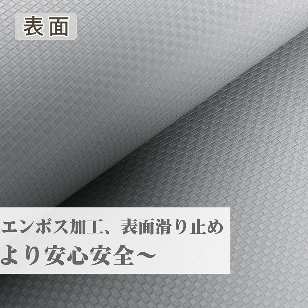 【滑り止め加工】表面は目立たないエンボス加工で滑り止めの役割があります。裏面はシリコン滑り止め加工でズレにくいです。
