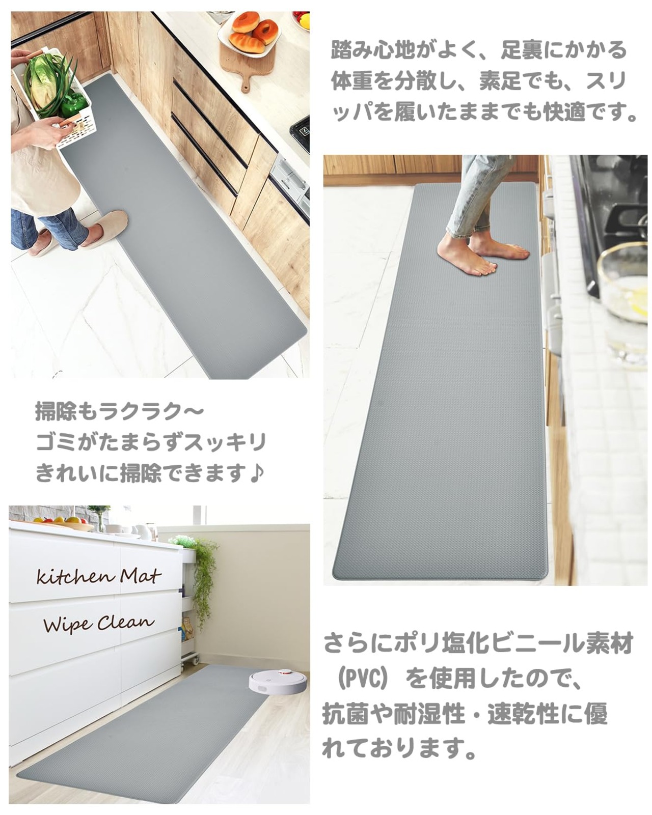 【特価】キッチンマット 拭ける 厚さ8mm 踏み心地いい フカフカ グレー 120 はっ水 防汚 低反発 クッション 洗濯いらず 台所 さっと拭くだけ