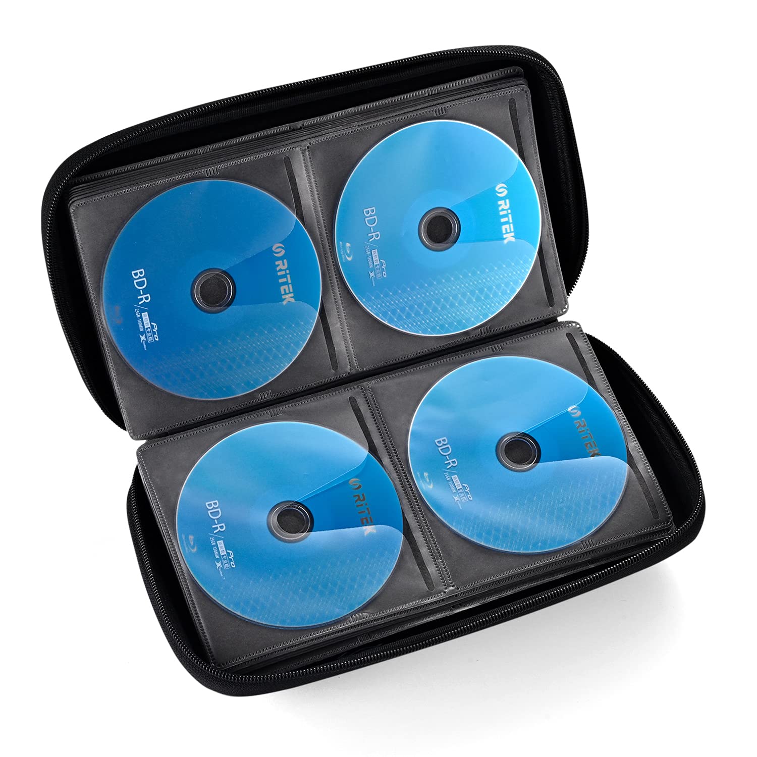 【高品質】EVA +不織布フィルム製。厚手・適度な硬度のカバー、スリムなジッパー付き。防水・耐摩耗性。96枚のディスクを収納可能。