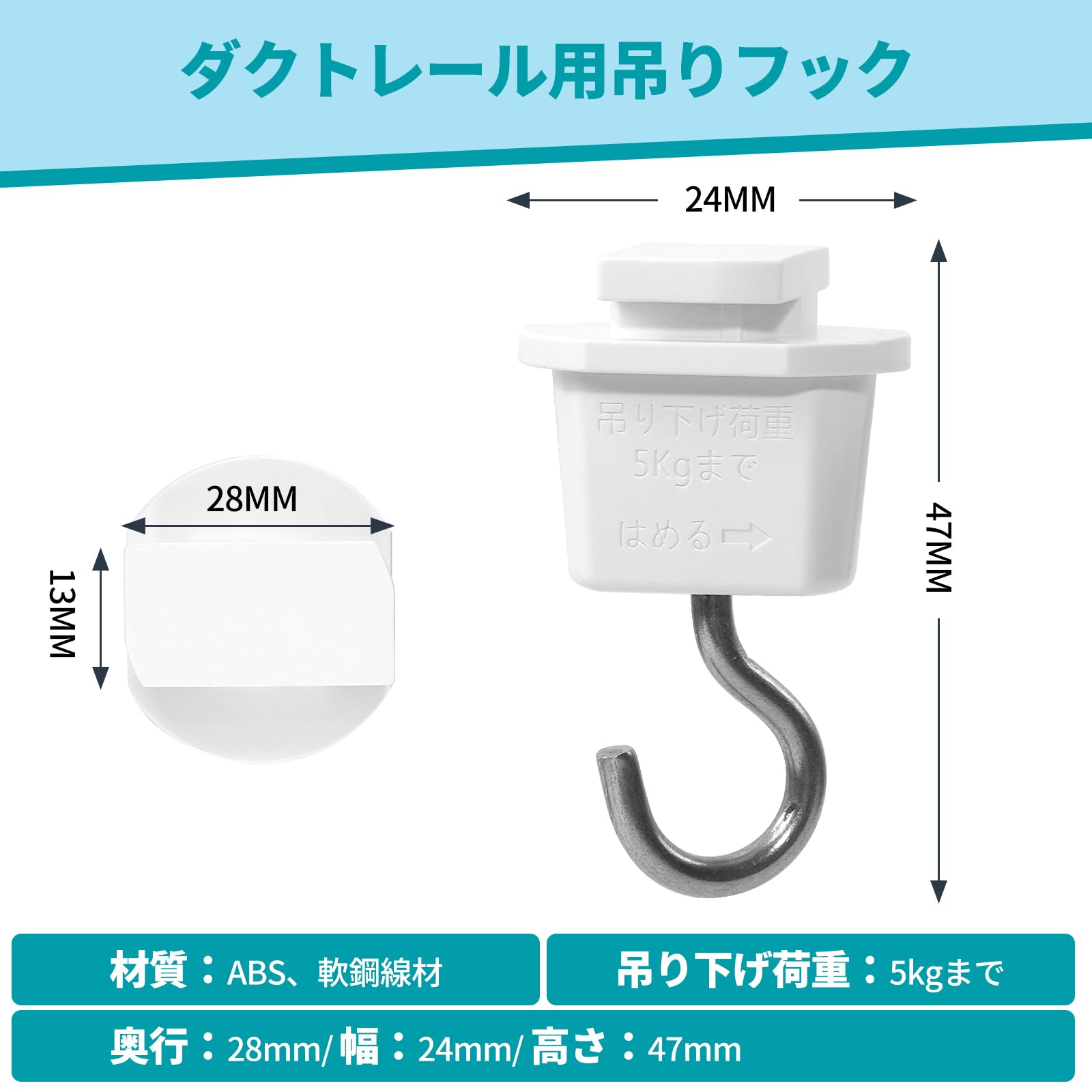 Aiwode|ダクトレール用吊りフック|照明器具配線 ショップライン 吊りフック|ライティングレール用吊りフック|簡単取付 工事不要|ホワイト|4個セット