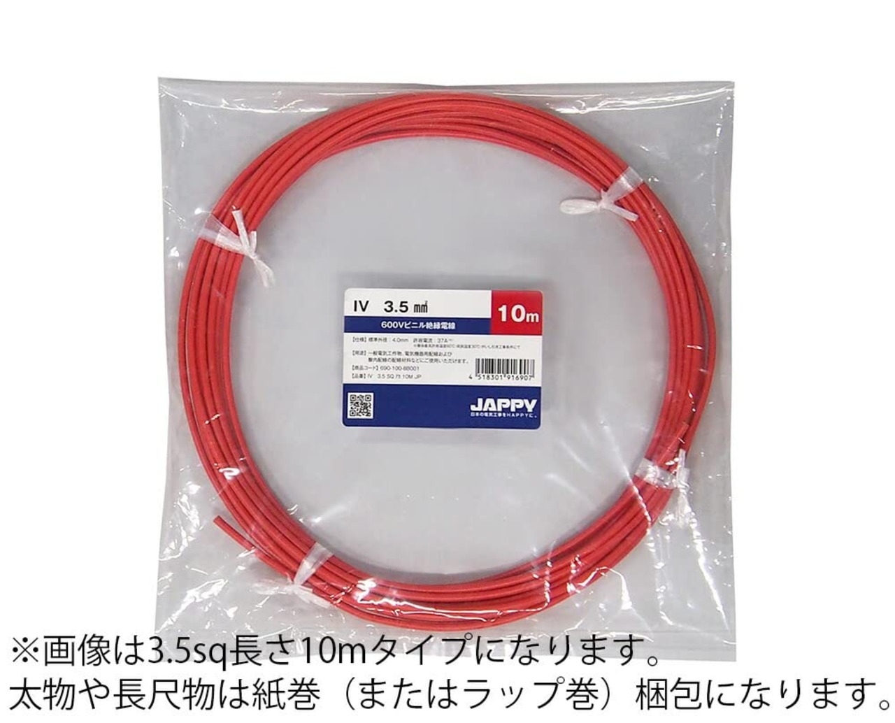 【新着】フジクラダイヤケーブル ビニル絶縁電線 IV 3.5 SQ 赤 5M 巻き
