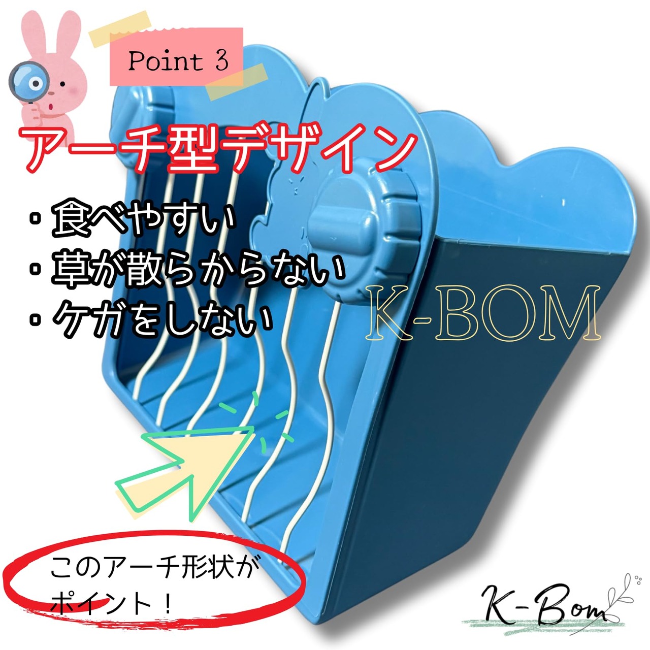 K-Bom チモシー入れ 牧草フィーダー 牧草入れ 干し草 兎 餌入れ チンチラ フード 大容量 うさぎ モルモット 小動物 内付け 外付け 省スペース スペパ ケージ 固定 (ブルー)