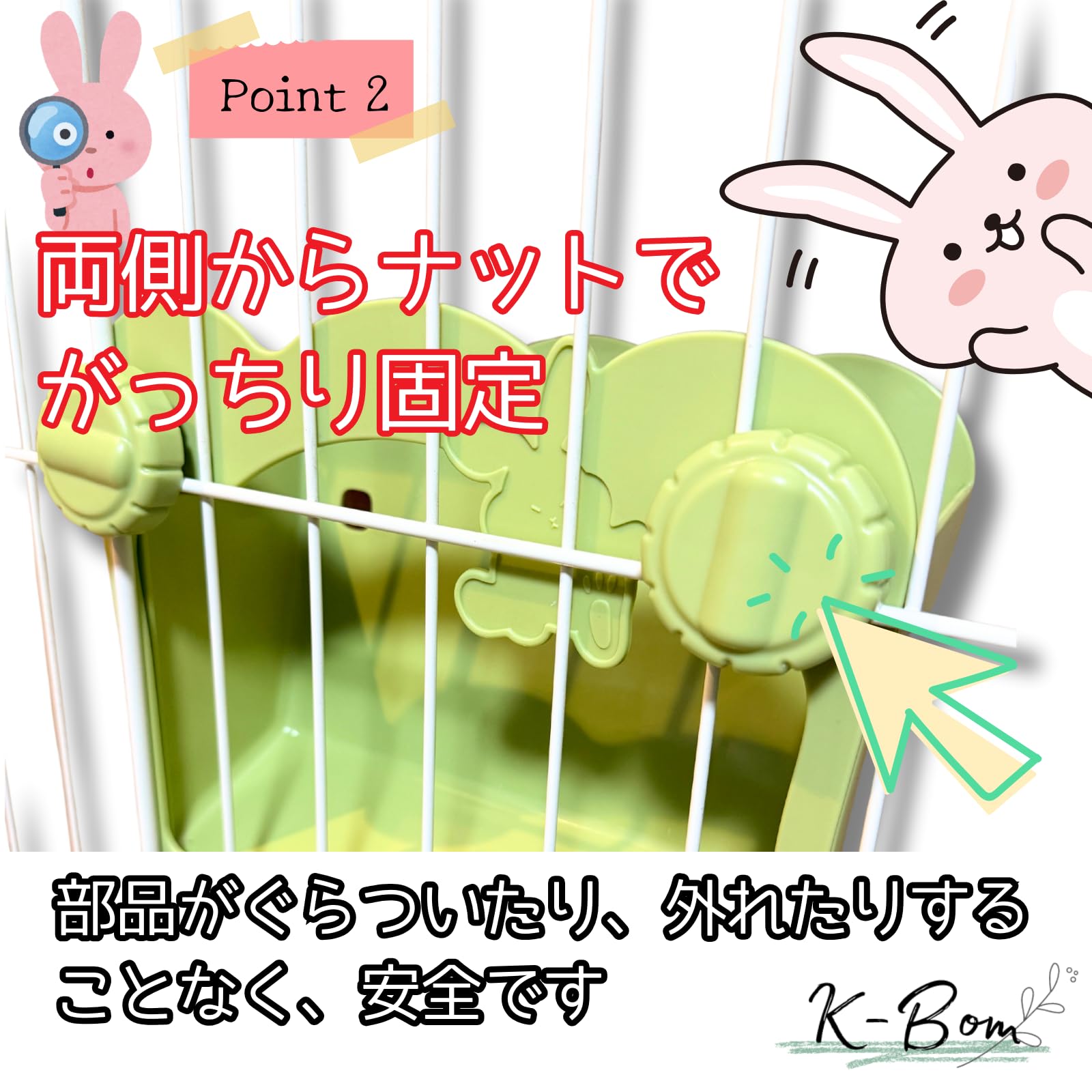 【清潔維持】この餌入れは、牧草がケージ内に散らばるのを防ぎ、清潔な環境を維持するのに役立ちます。お掃除の手間を減らし、いつも清潔な食事スペースを提供できます。