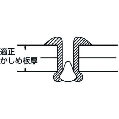 ●かしめ板厚(mm):1.6〜4.8●リベット長(mm):9.3●フランジ径(mm):9.6●リベット径(mm):4.8●下穴径(mm):4.9〜5.0●せん断荷重(N):2200●引張荷重(N):3300