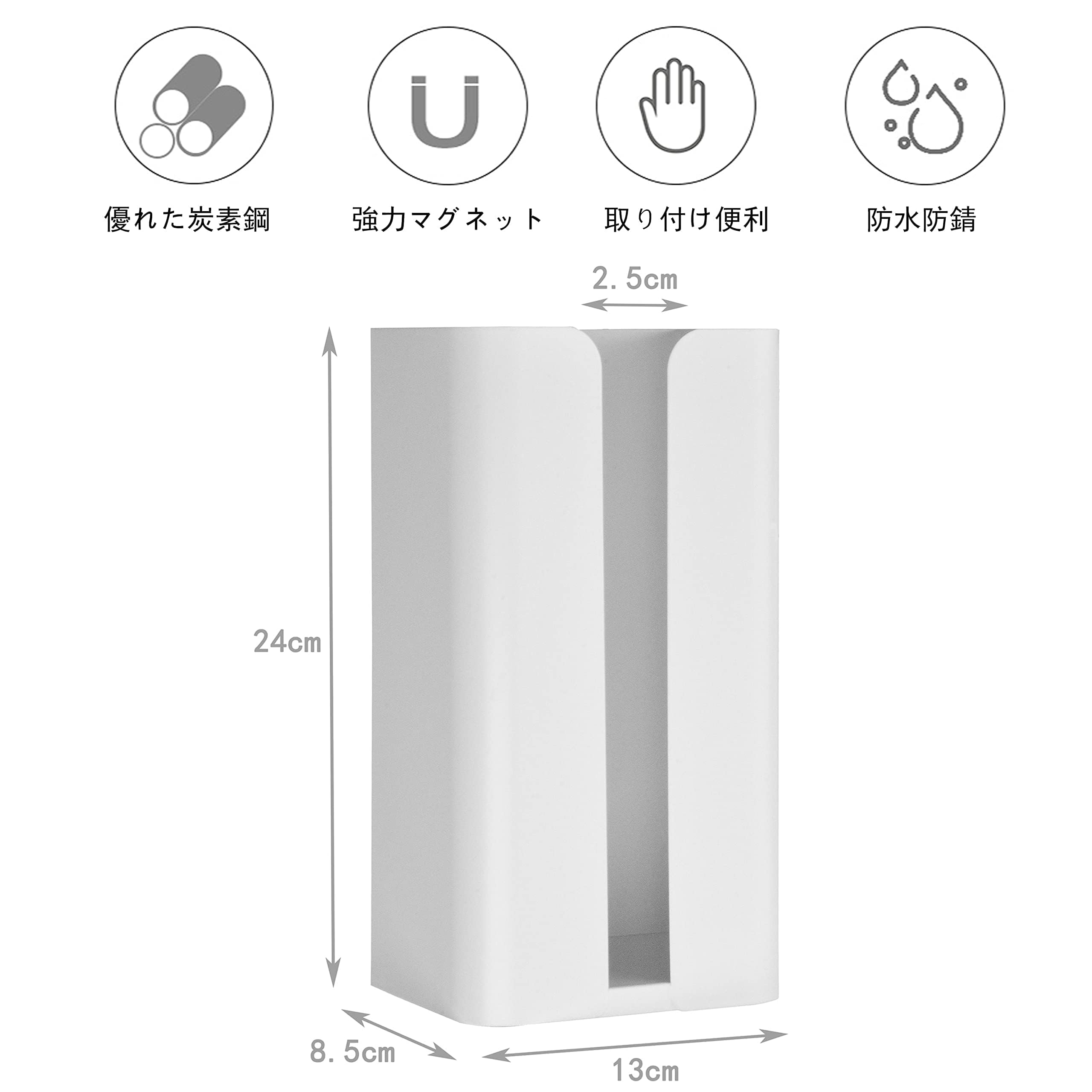 【商品仕様】商品サイズ:約24*13*8.5cm 本体:素材:炭素鋼+マグネットシート 重量:531g 耐荷重:約1.7kg 取付可能な壁面:マグネットがつく平らな面・スチール壁面