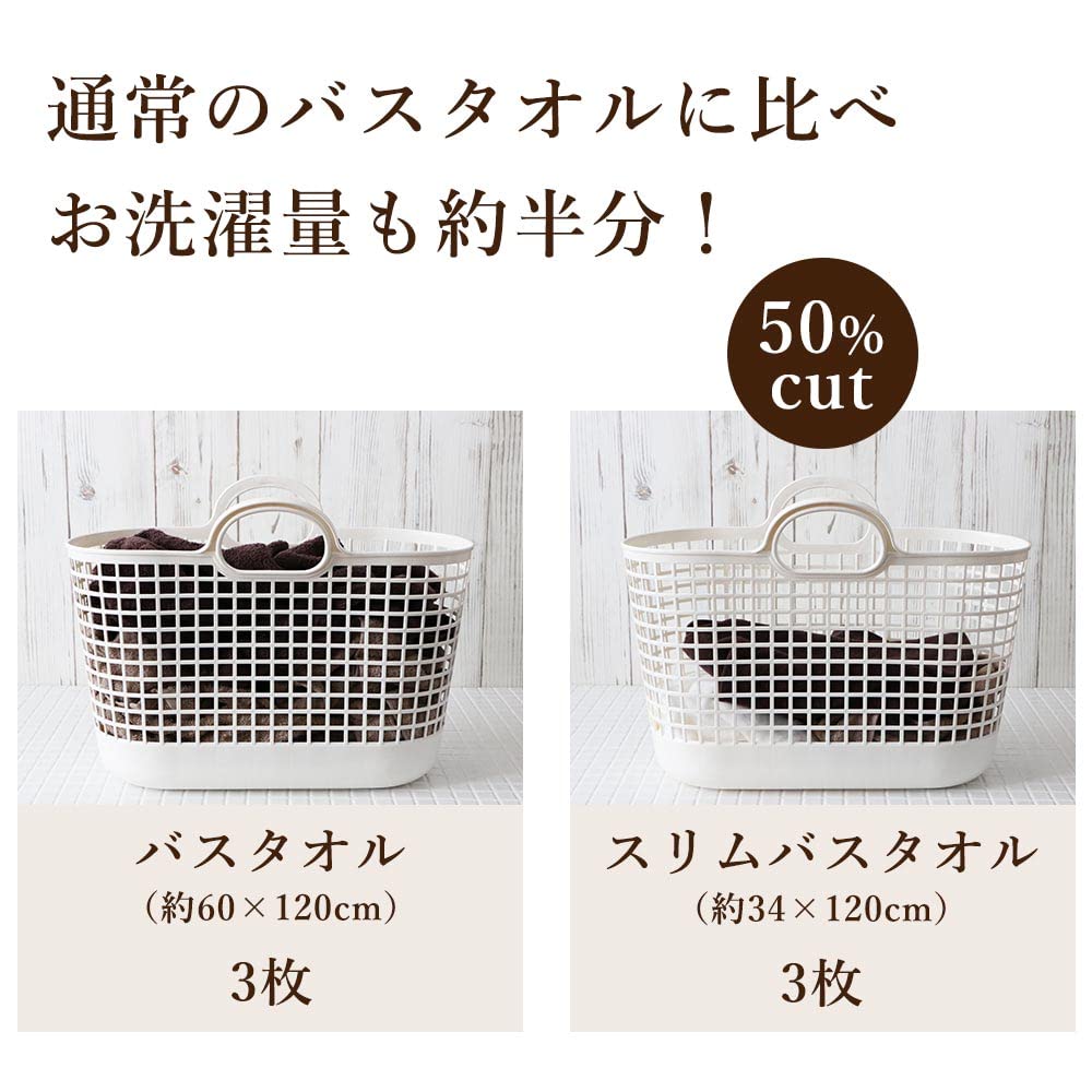 通常のバスタオル(約60×120cm)に比べ、お洗濯量も約半分。