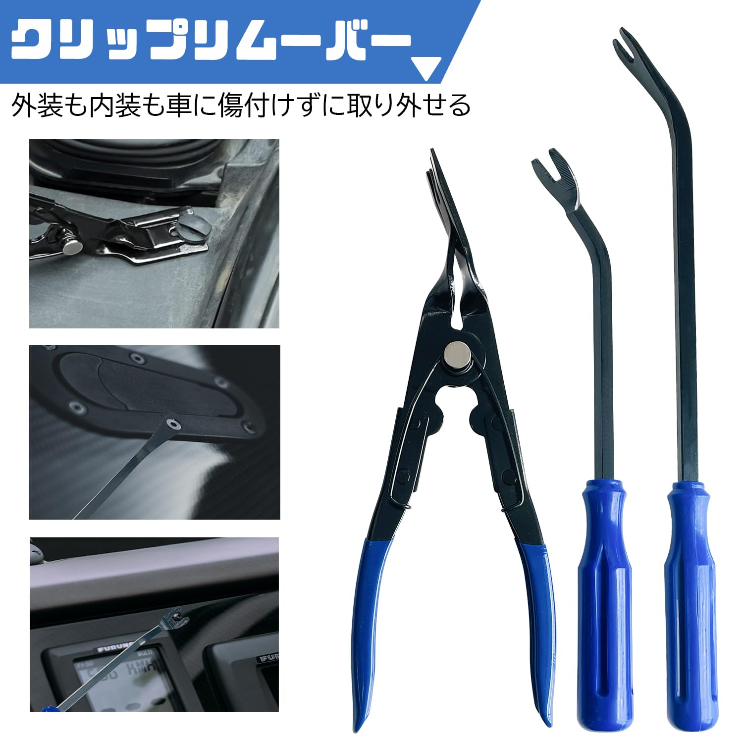 【握りやすい&使用簡単】テコ原理を利用して手軽に使える内張りはがしです。2〜3mm肉厚設計、手に持った時の安定感があり、力を入れやすくなります。作業者の疲労を軽減し、より精密な作業が可能。プラスチック製に加えて金属製もありますし、クリップやピンが外せないときにも便利。ロング丈のクリップリムーバーが付いているため、手の届かないところでの作業にもラクラク。