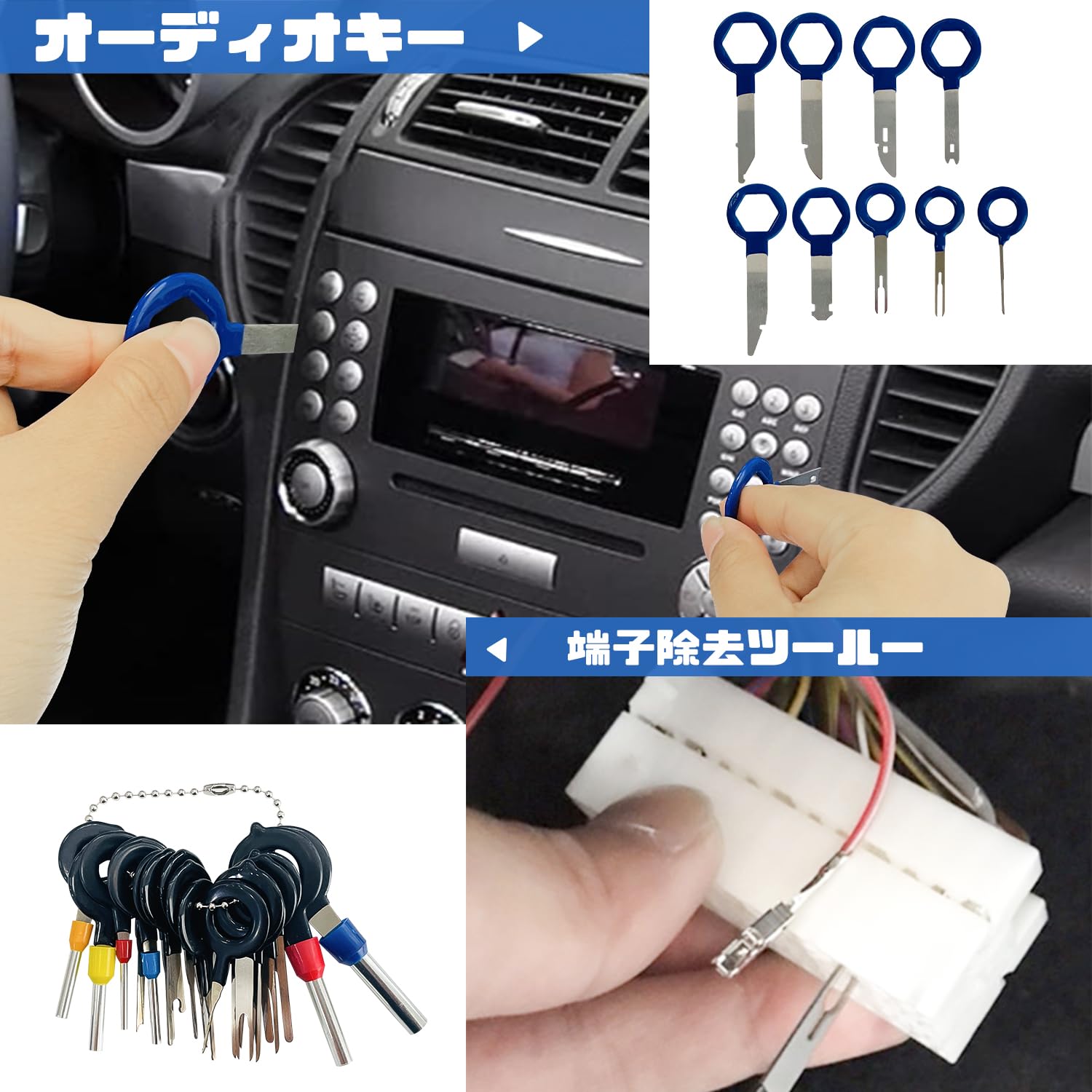 【備品が充実】内張りはがし以外、端子除去ツールー、オーディオキー、配線ガイドなどが付属されております。内張りをはがすだけでなく、車内の電子機器や配線システムにも対応できるようになっています。オーディオシステムの修理には便利。多種ツールをセットになって、内張りはがしから配線作業まで幅広いメンテナンス作業に対応できるのは特徴。