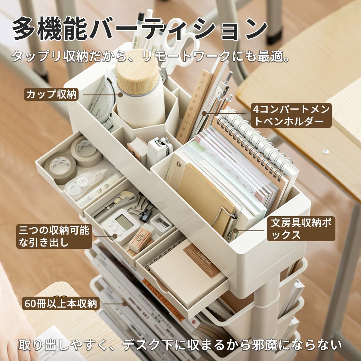 【広い用途】このデスクサイドラックを使用して、教科書、ノート、鉛筆、定規、筆記用具、水筒などを分類し、よく整理することができます。小学校から中学校、高校、大学、仕事までにも適用します。さらに、絵棚、日常収納棚などとしても便利です。