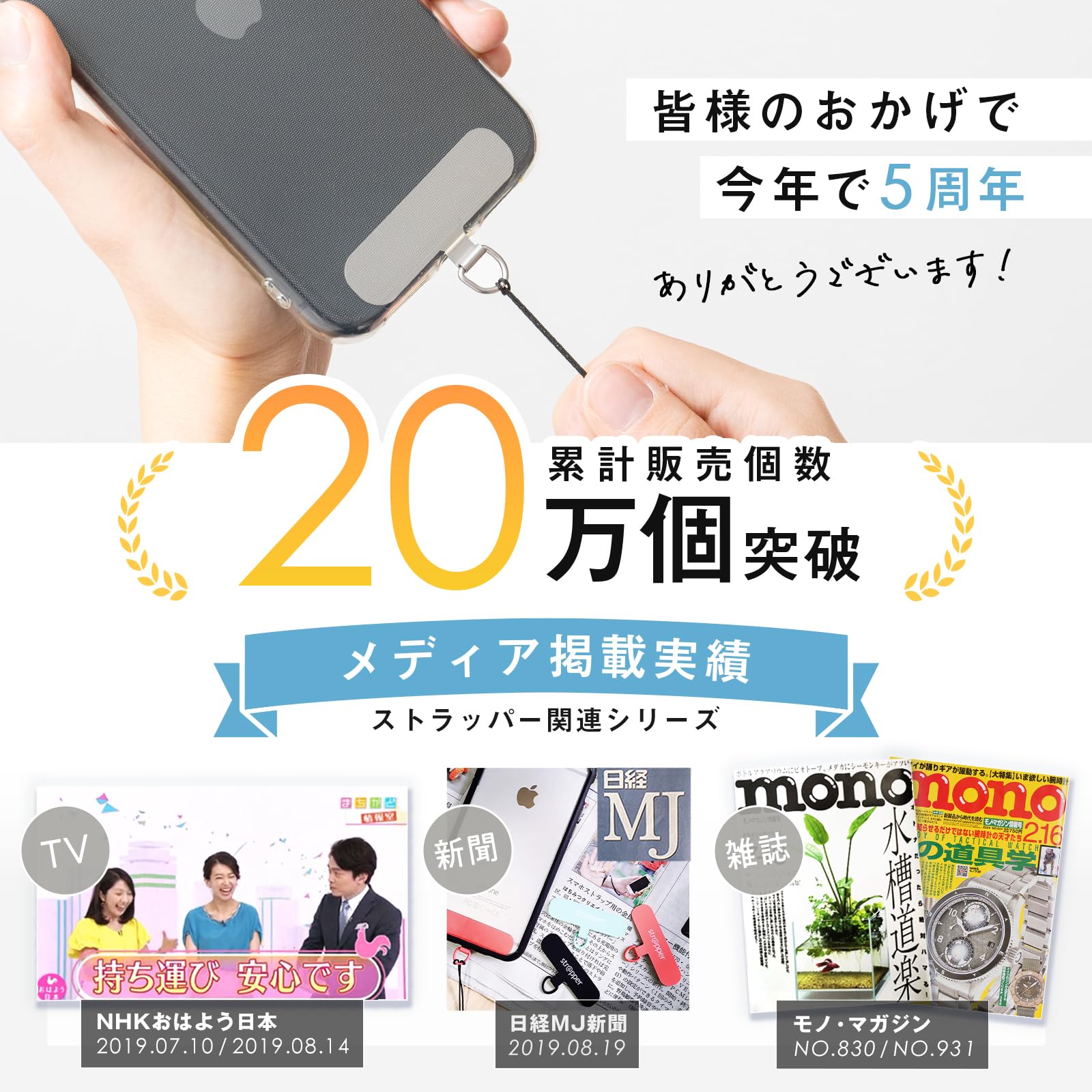 【マットで上品な質感のステンレス製スマホストラップホルダー】ストラッパーはマットで落ち着いた光沢感がスマホの色とぴったりマッチするストラップホルダーです。金属製で切れない/ちぎれないのでスマホ落下防止対策にもぴったりです。