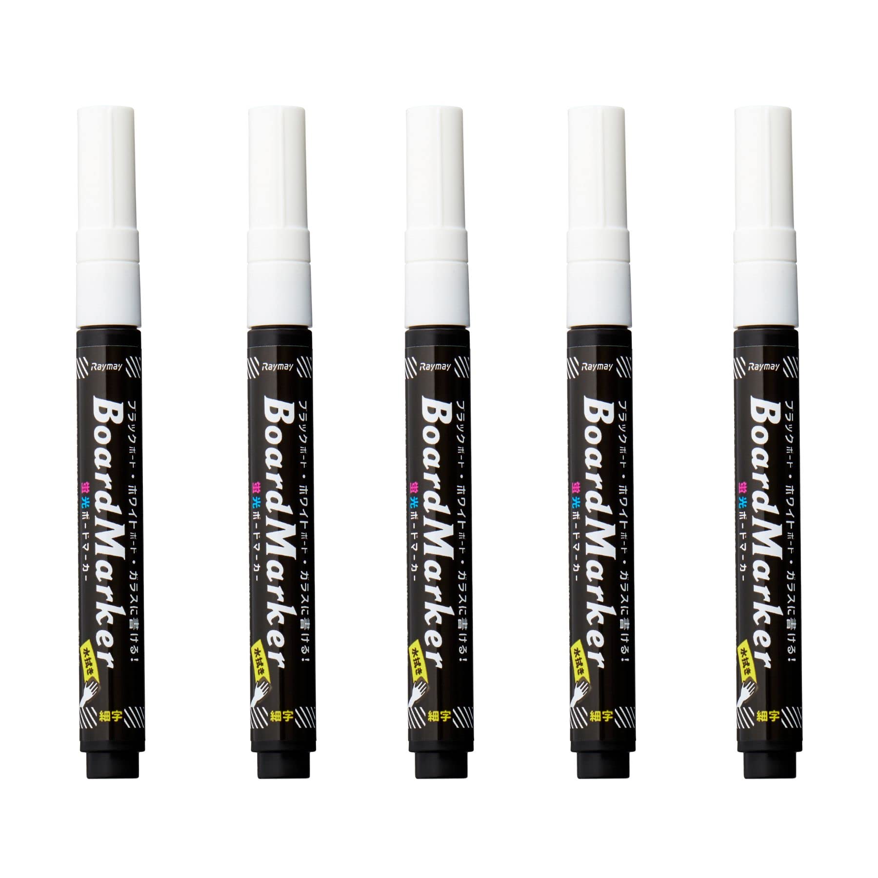 レイメイ藤井 黒板 ボードマーカー 蛍光 細字 LBM1045W 5本セット ホワイト 220656