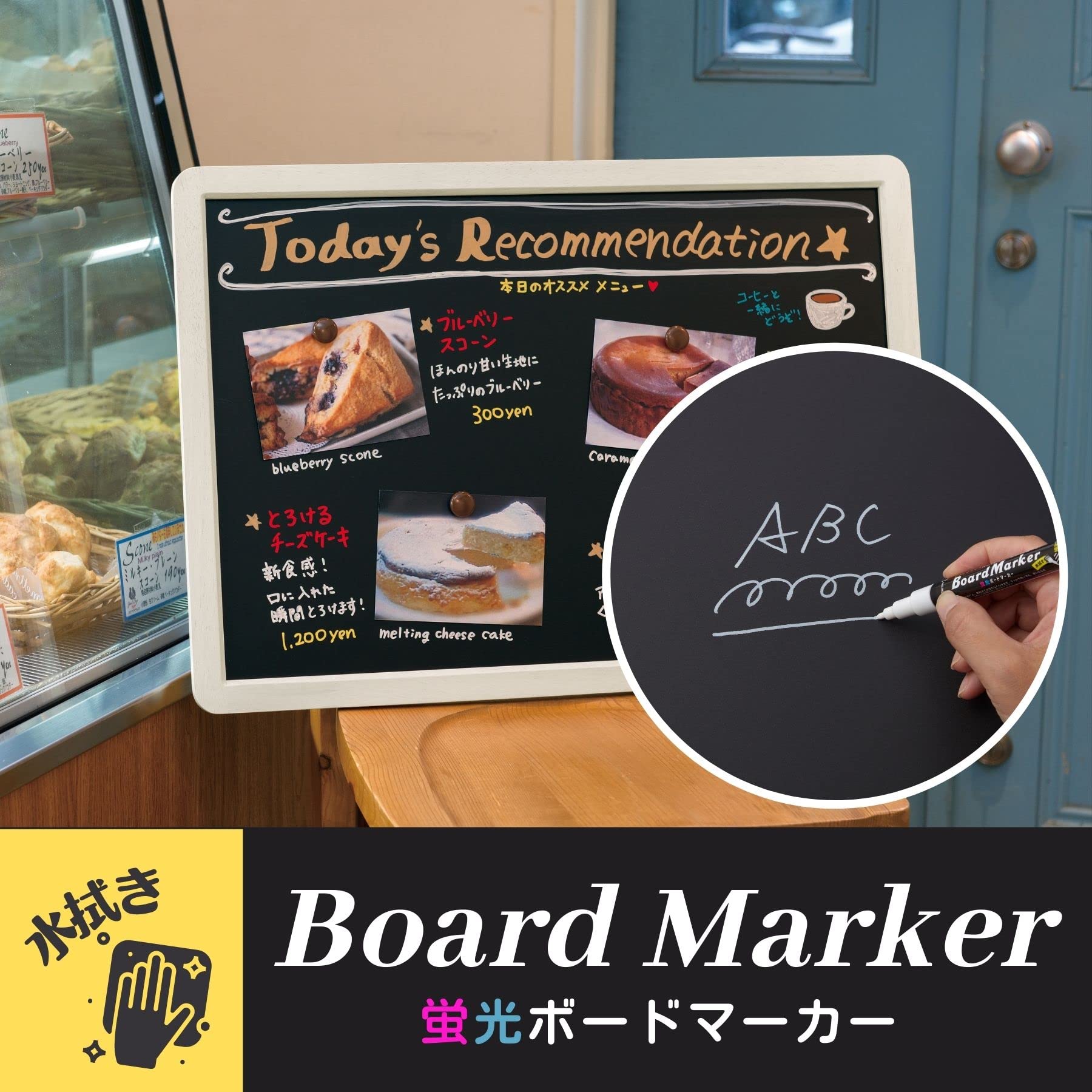 ブラックボード、ガラス、アクリルなどに書ける水性ボードマーカー。インクを最後まで使える直液式。