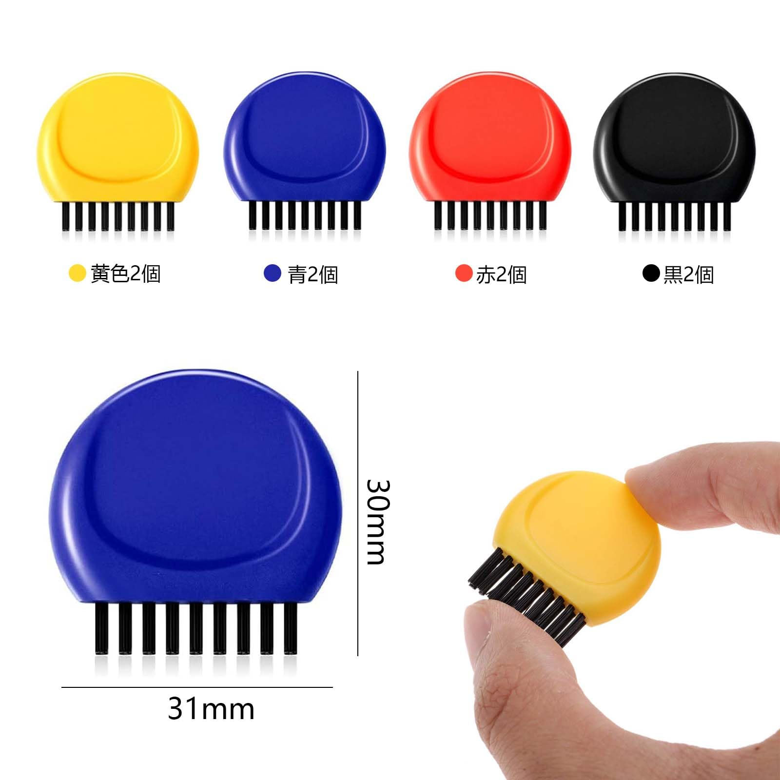 【包装】8本のゴルフブラシが届きます(青*2+黒*2+黄*2+赤*2)、サイズ仕様は約3*3.1cmです。ミニサイズ、コンパクトで持ち運びに便利、ポケットに入れることができます。