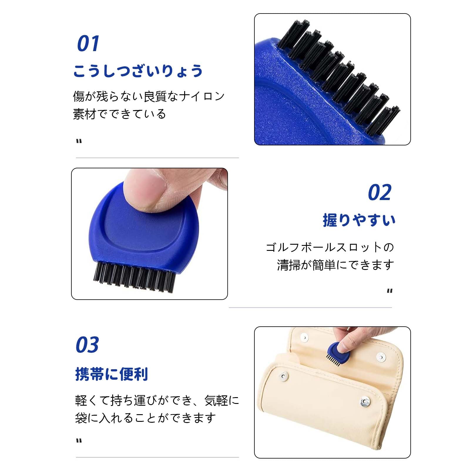 ゴルフプレー時にバッグに入れておけば、いつでも取り出して使用できます。ゴルフブラシは、ゴルフクラブ、ボール、シューズの溝を素早く効果的に清掃します。