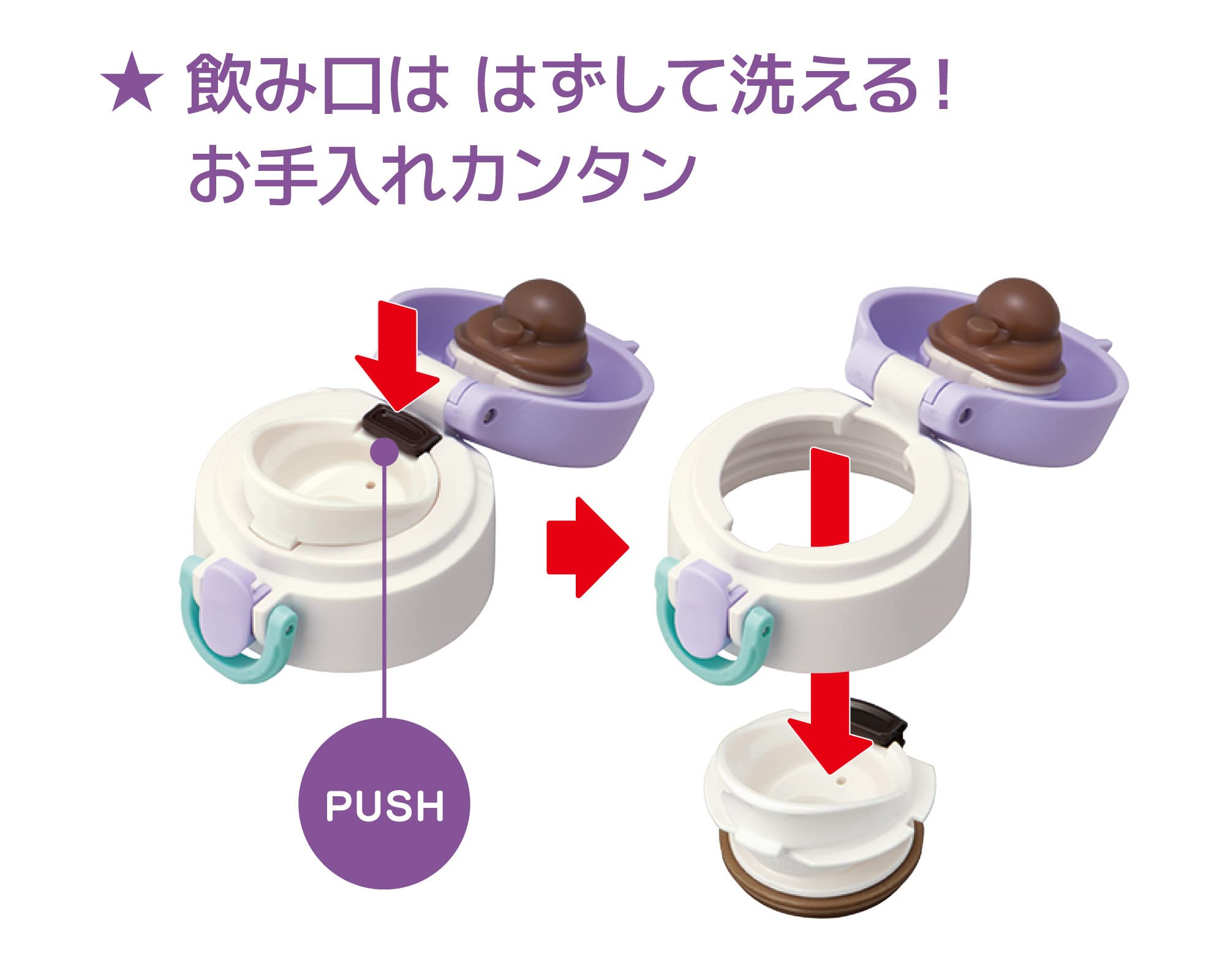素材・材質:内びん:ステンレス鋼 / 胴部:ステンレス鋼(アクリル樹脂塗装) / フタ・せん本体:ポリプロピレン / 飲み口:ポリプロピレン / フタパッキン:シリコーンゴム / せんパッキン:シリコーンゴム
