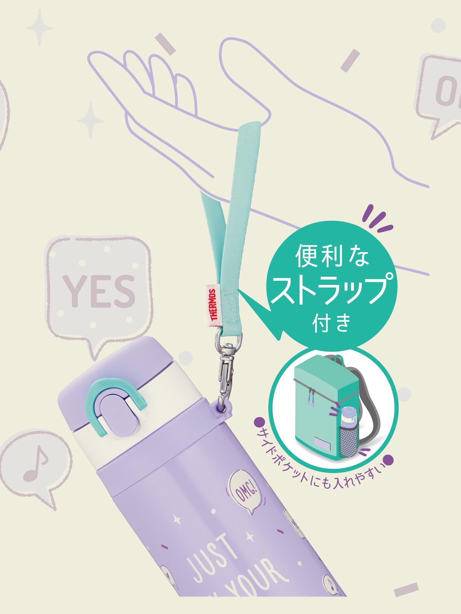 ストラップ付きで持ち歩きもらくちん ハンディストラップ付きキッズ向けケータイマグ