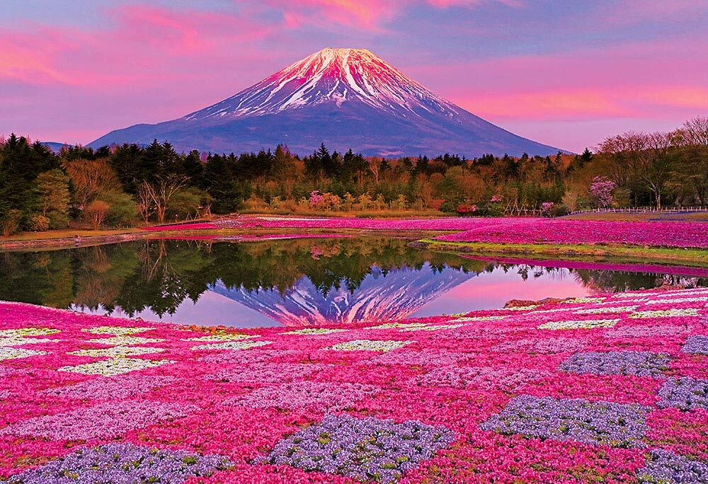 咲き誇る芝桜と、富士を彩る夕陽が美しい、1000マイクロピースジグソーパズルです。
