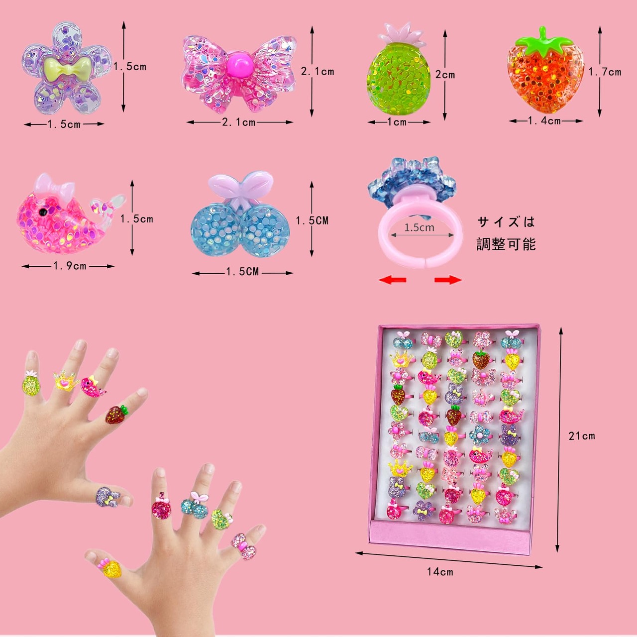 【人気】[Ynanimery] 指輪 おもちゃ 女の子 セット リング 50点セット かわいい プラスチック おしゃれ ごっこ遊び クリスマス 誕生日 プレゼント