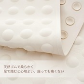 お風呂場で滑って転倒する危険は、お子様、お年寄りだけでなく、ご家族皆にとって“今そこにある危機”。この滑り止めマットですぐ対策を!裏側に吸盤があり、浴槽や洗い場の床にガッチリと貼りつきます。ソフトな素材でクッション性があり、肌触りも快適です。