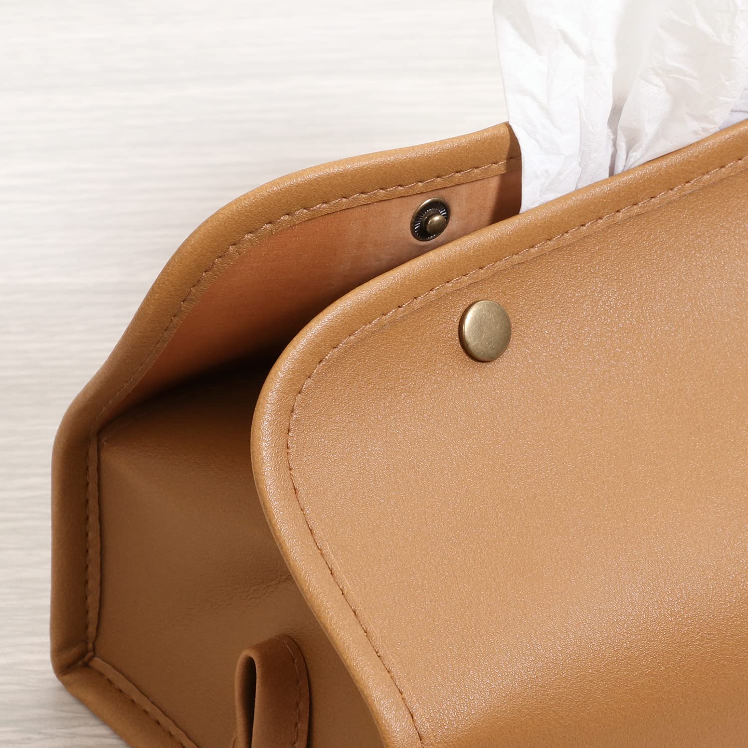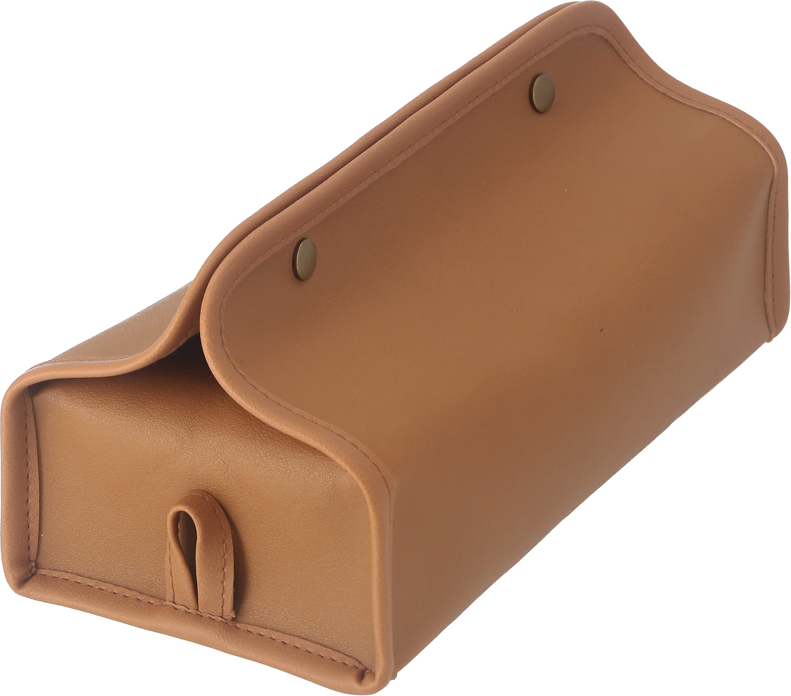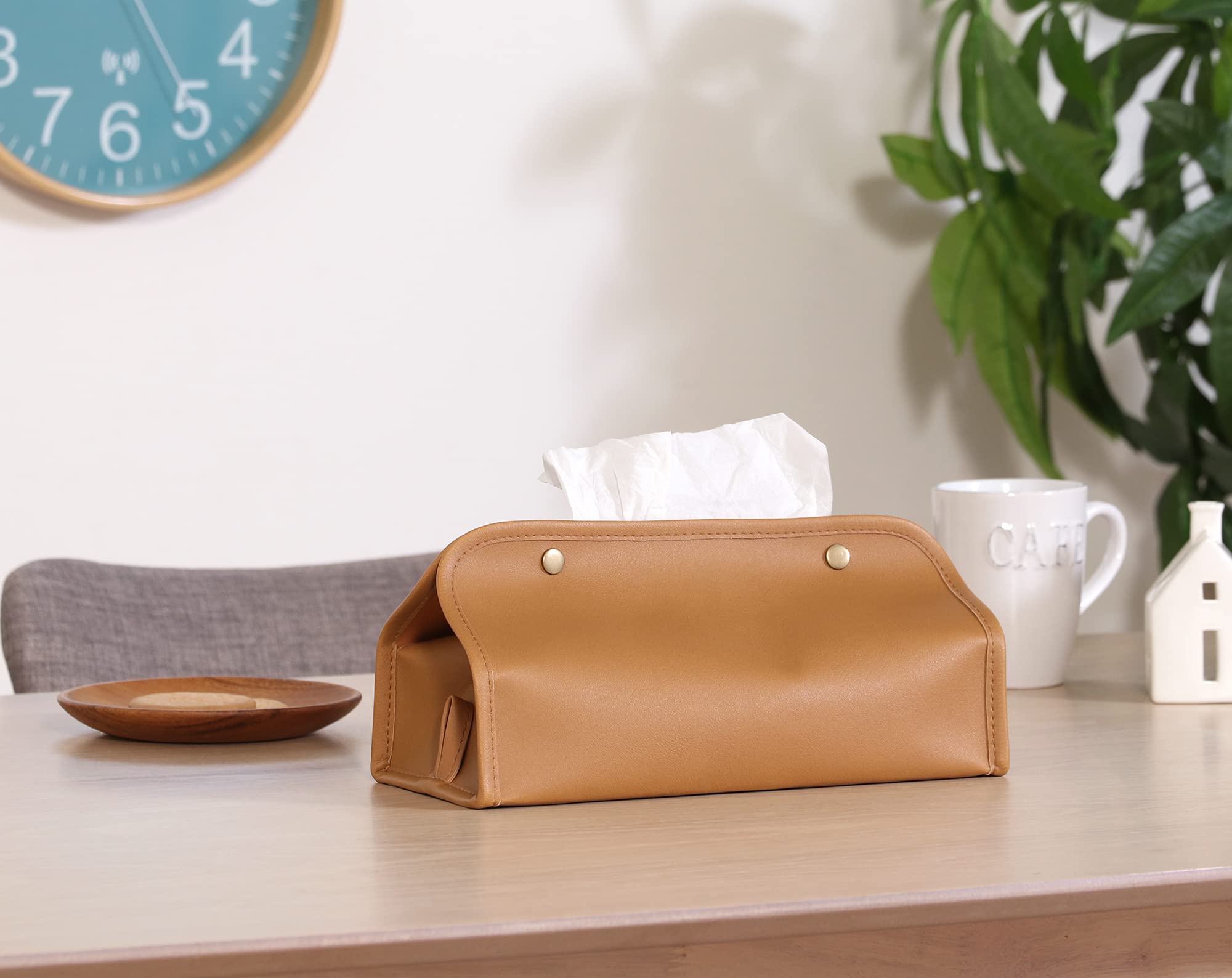 レザー調の素材と金色のボタンを使用した高級感のあるティッシュケース。