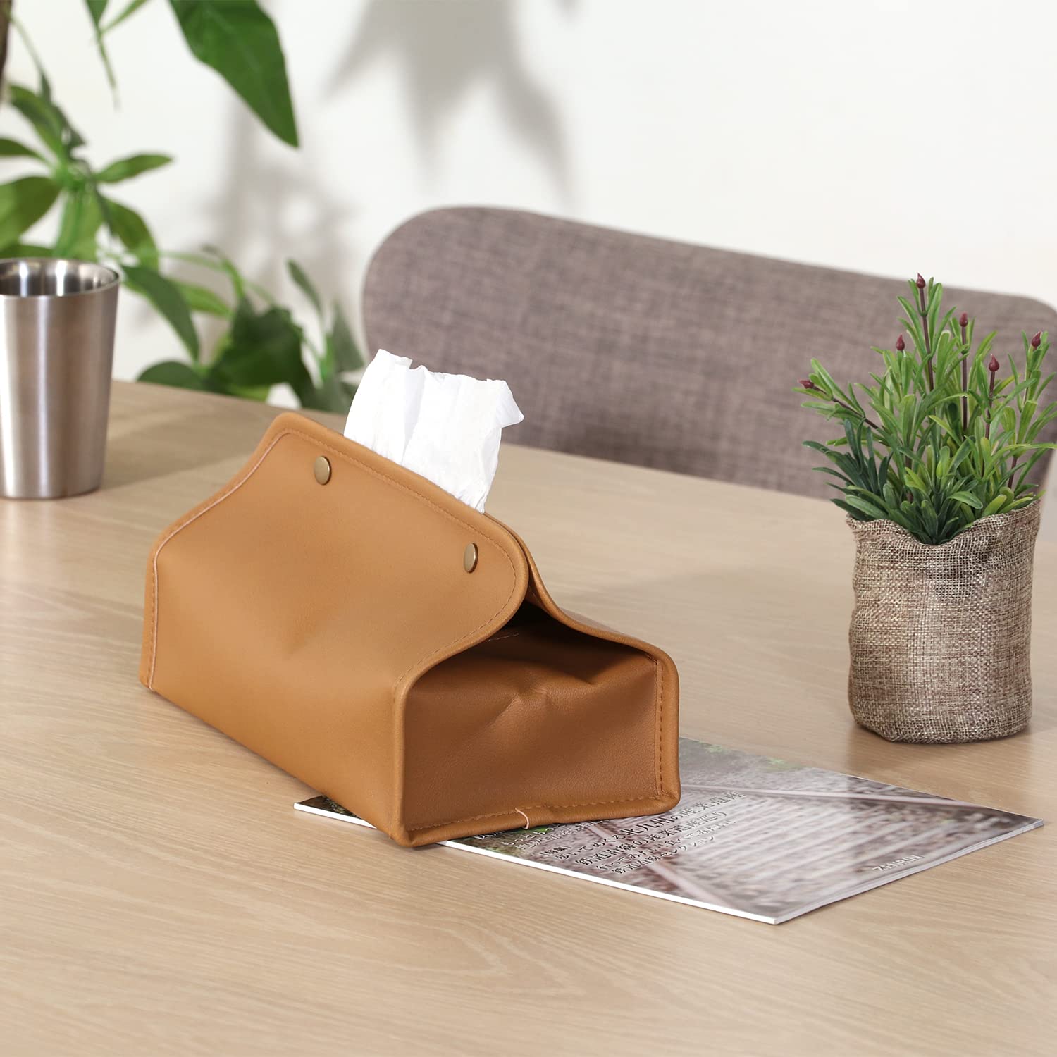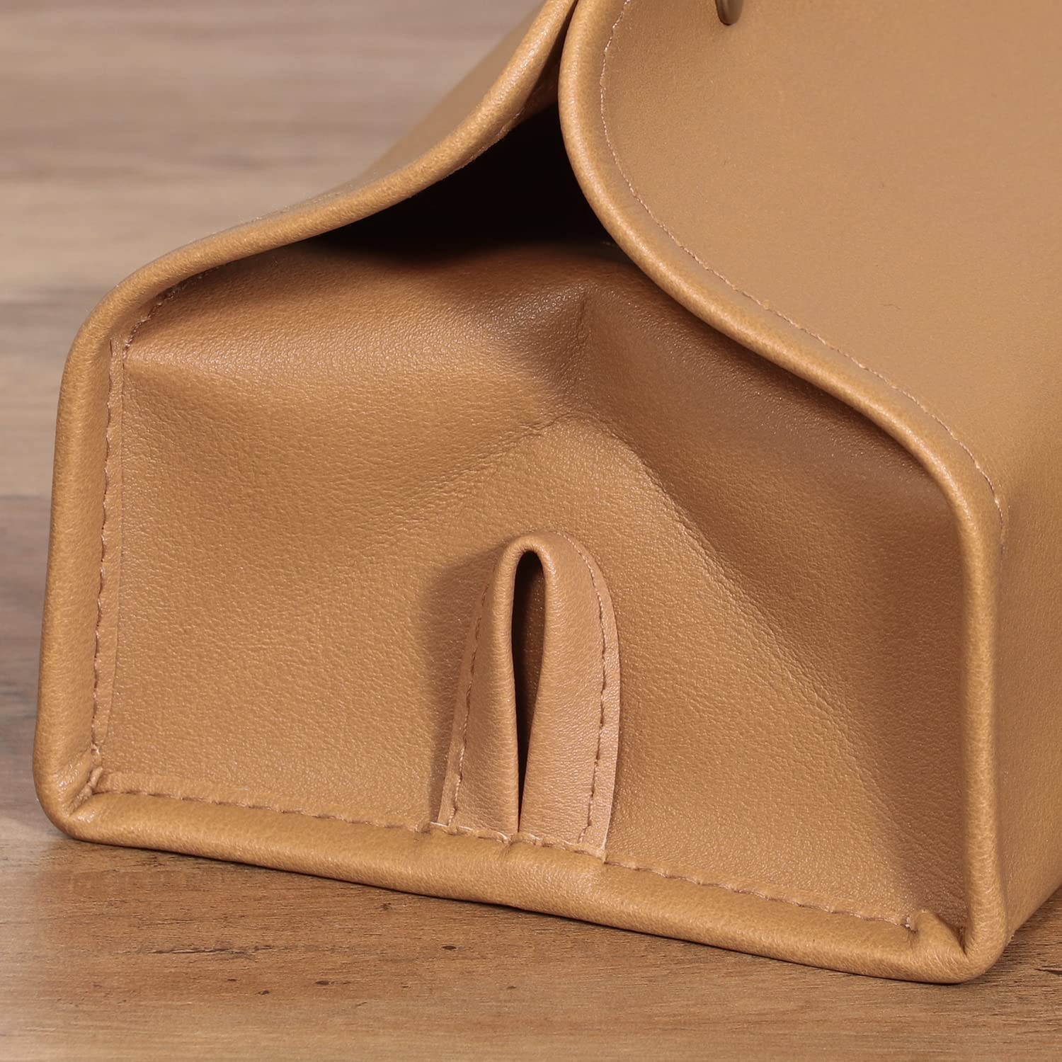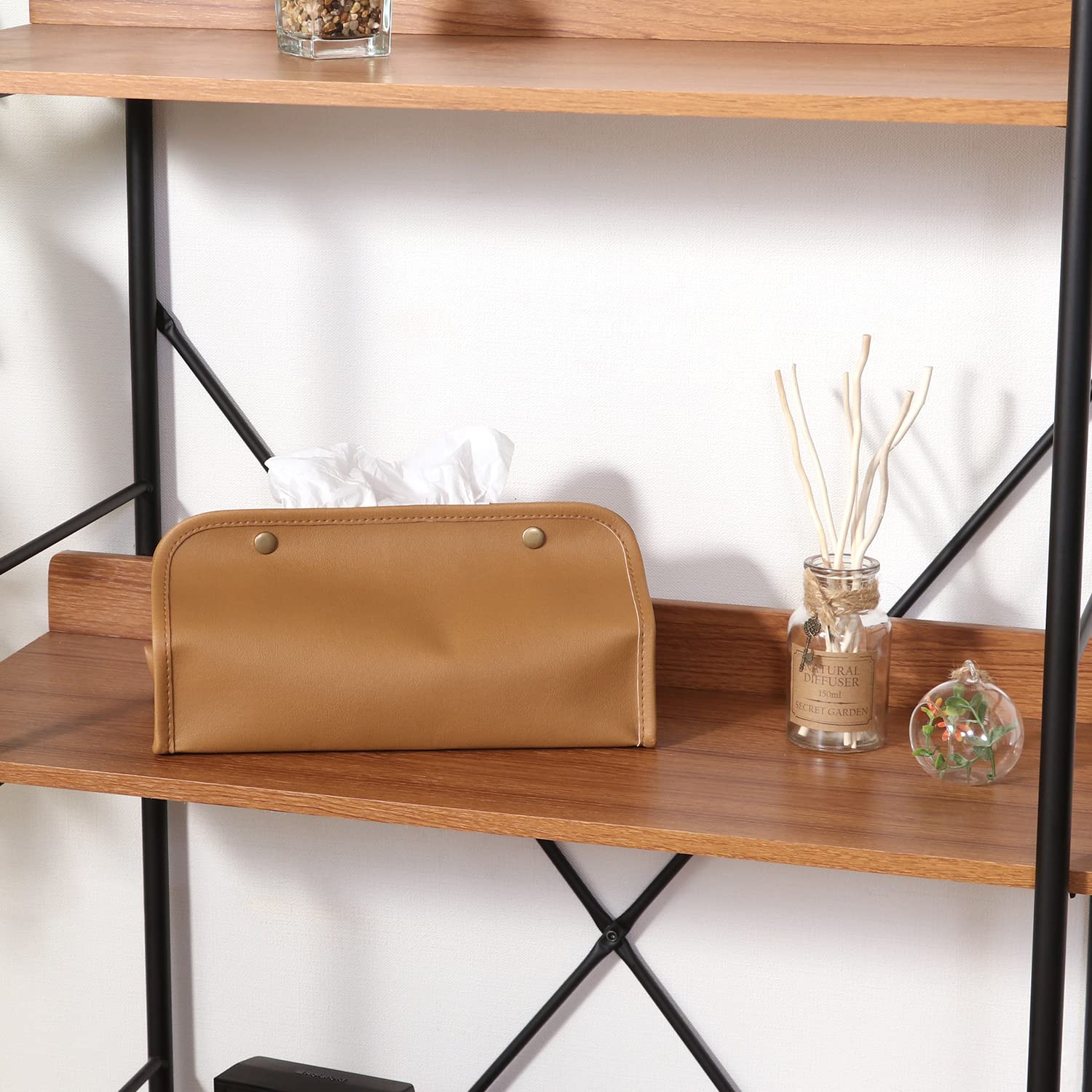 レザー調の素材と金色のボタンを使用した高級感のあるティッシュケース。
