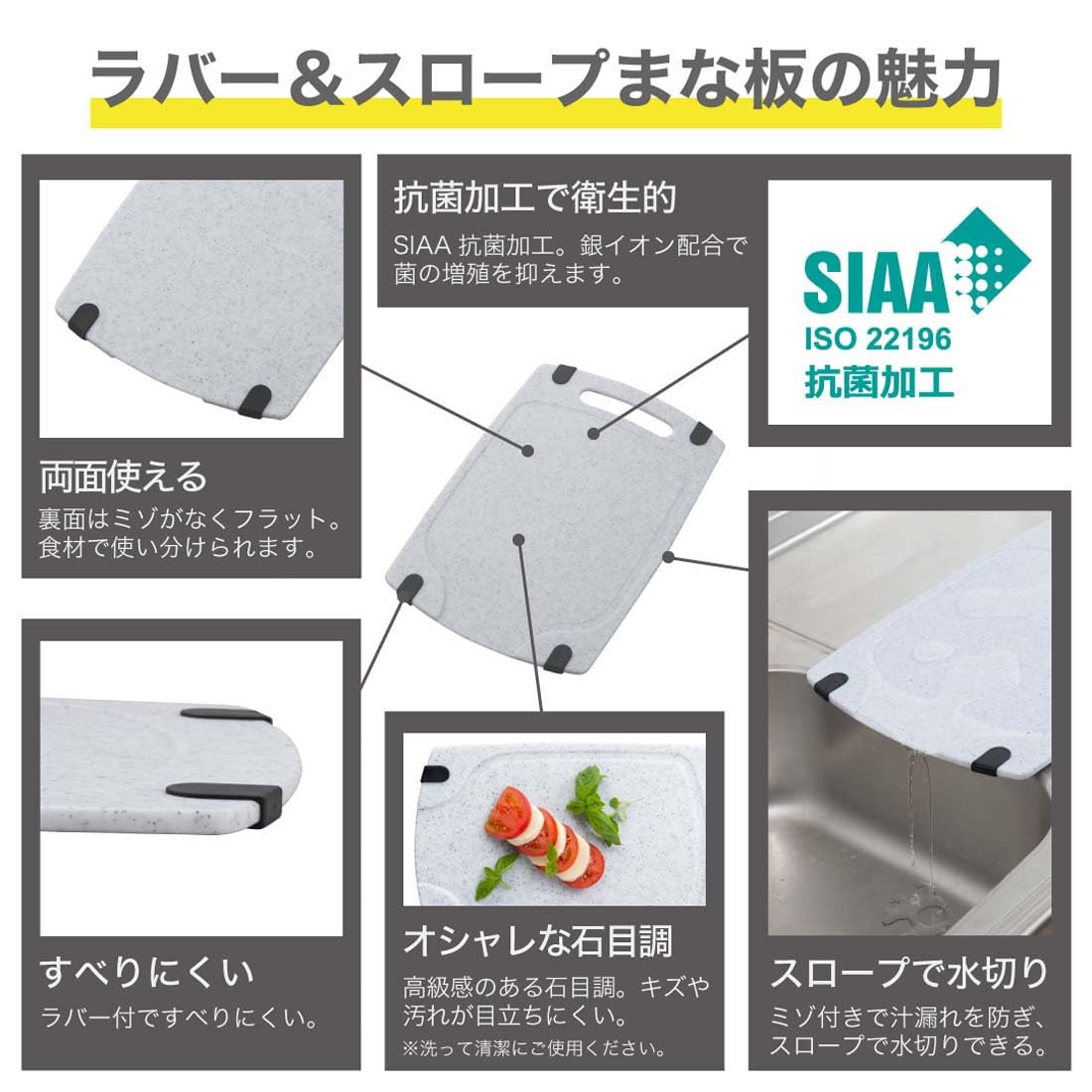 両面使えるラバ-付スロ-プまな板