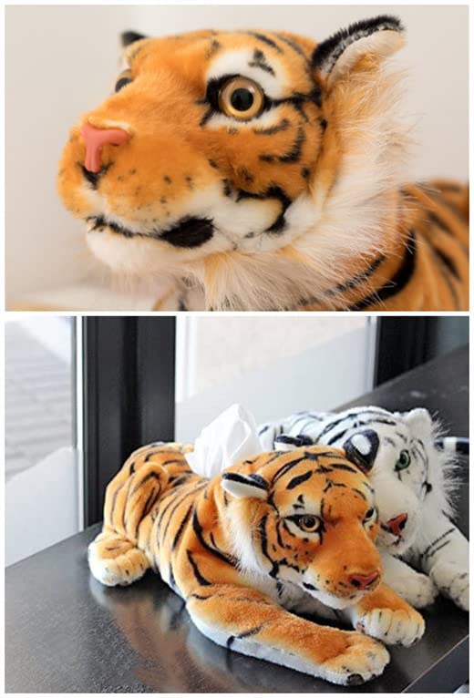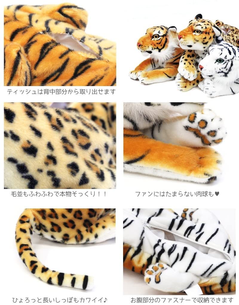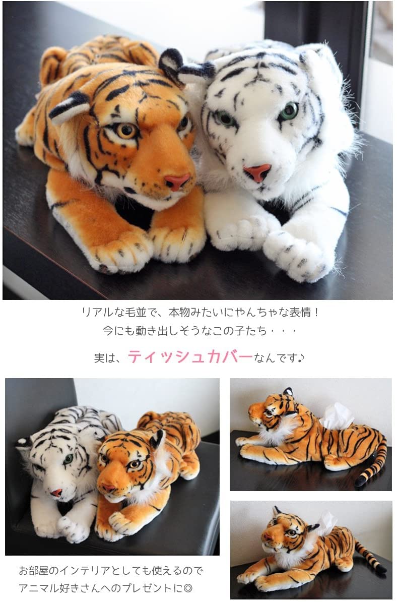 【在庫処分】アニマル ティッシュカバー ぬいぐるみティシュカバー ティッシュケース ティッシュボックス ふわふわ 可愛い インテリア (ホワイトタイガー)