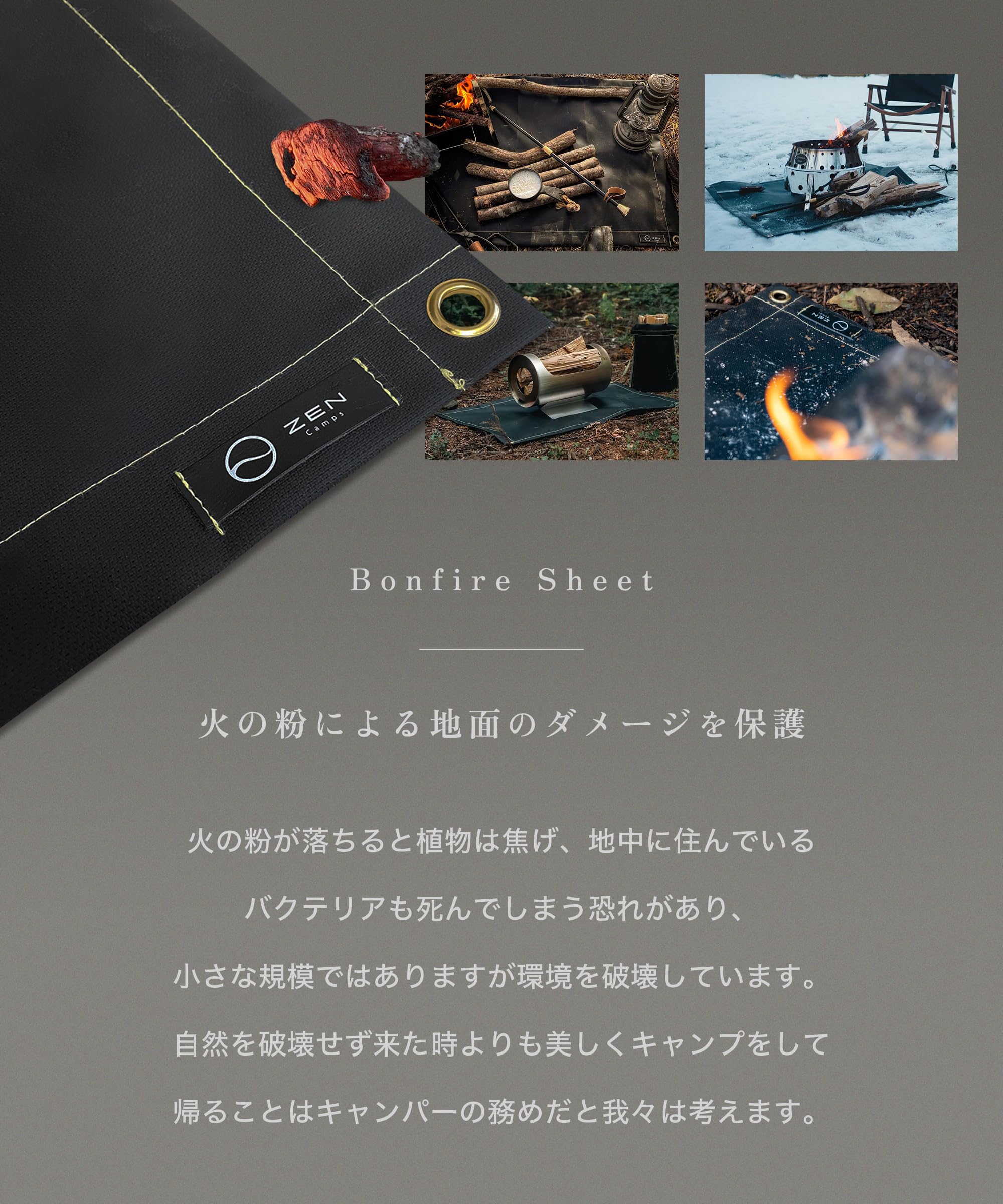 ZEN Camps 焚き火シート スパッタシート 焚き火台シート チクチクしない シリコン ブラック 黒 耐火 耐熱 防炎 防火 シート キャンプ 芝生保護【日本ブランド】