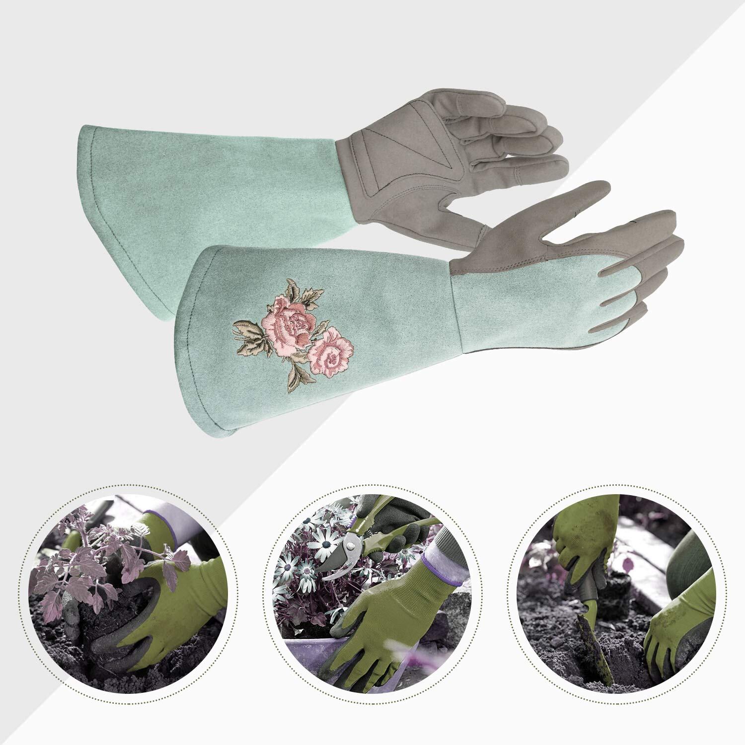 [Intra-FIT] CE認証済み 園芸用手袋 ガーデングローブ バラグローブ 長袖 バラ手袋 園芸手袋 薔薇用手袋 合成革 ガーデンニング 庭仕事 耐穿刺 フィット 通気 柔らかい 花柄デザイン