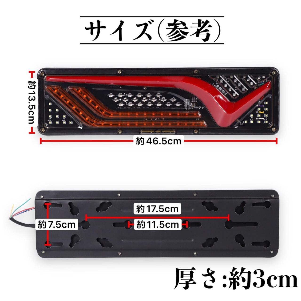 V字型 トラック LED テールランプ 左右セット 流れる シーケンシャル ウインカー 24V チューブ ふそう 日野 日産 UD マツダ いすゞ ダンプ 等 汎用 社外品 (46.5cm)
