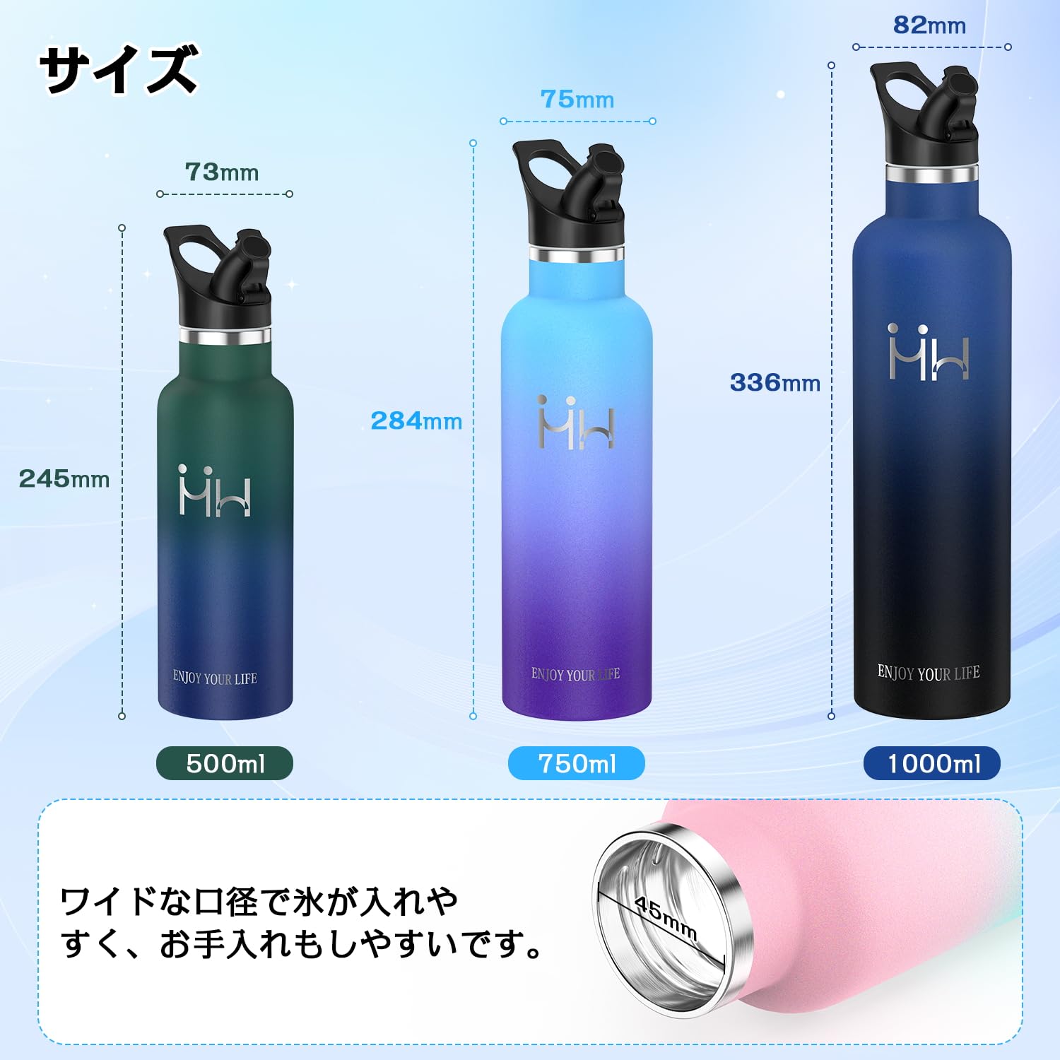 【鳥嘴デザインで使いやすさ抜群】 ◆ 鳥嘴型の飲み口を採用しており、少量ずつ飲むことができ、飲み口が小さくてこぼれにくいです。外出中でも手軽に飲むことができ、車の中や移動中でも便利です。飲みやすさにこだわったデザインで、どんな場面でも使いやすいです。4.5cmの口径で、500ml、750ml、1000mlの3種類から選べ、シーンに応じて使い分けができます。持ち運びやすく、バッグを持ち運ぶ必要がない時にも便利です。