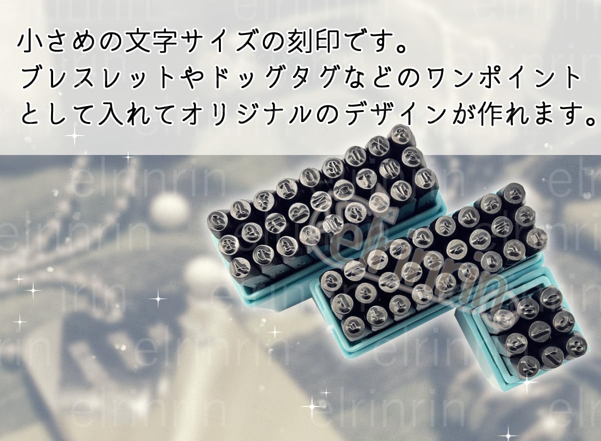 サイズ:刻印約3mm 筆記体アルファベット大文字・小文字各A〜Z+& 27本ずつ、数字0〜8(6と9が兼用) 9本 ※錆防止用に油が余分についてる場合がございます。拭き取ってお使いください。 ※商品により側面に印があるものとないものがあります。ご了承くださいませ。