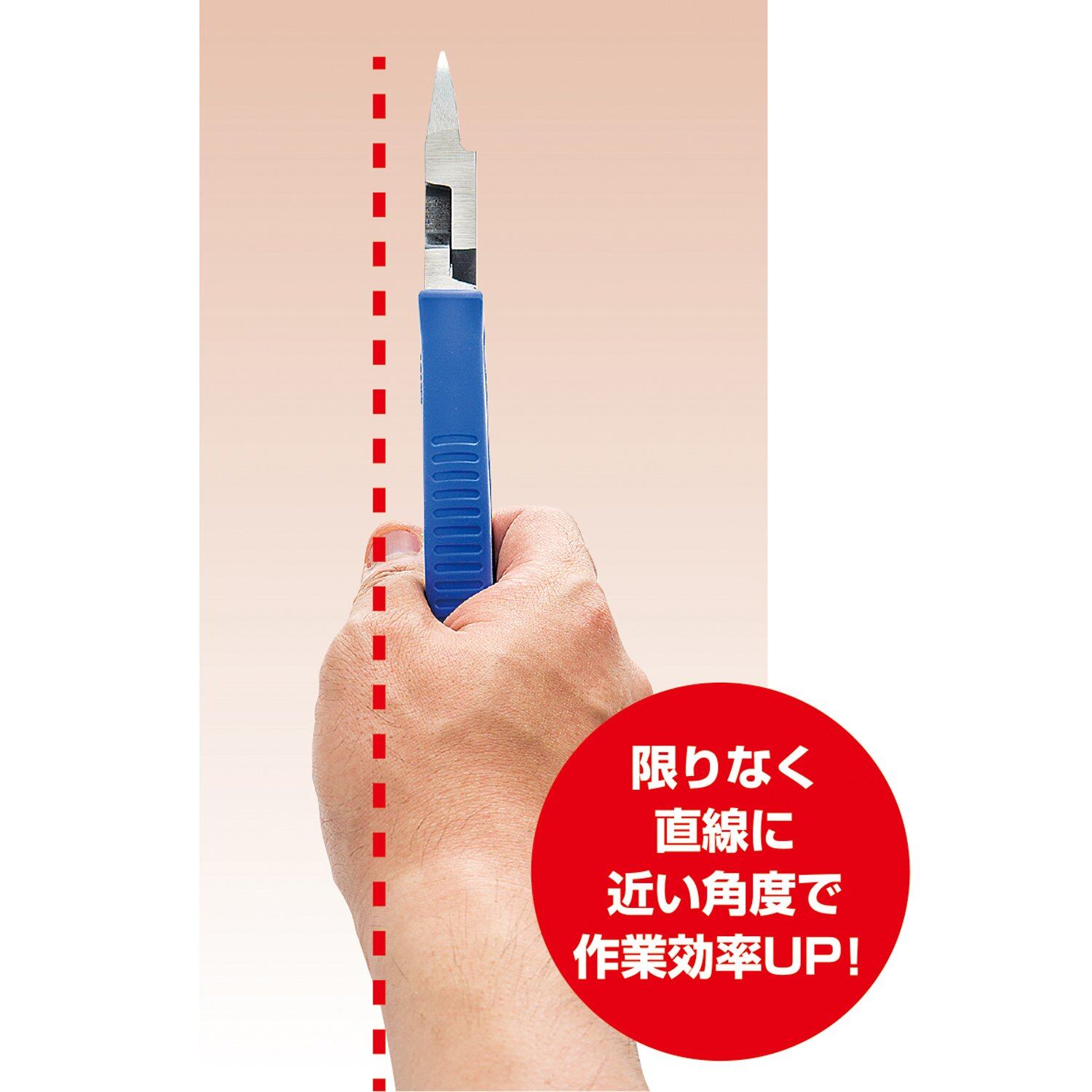 ● 刃角度を15°から7°にすることにより、腕~手首~指先~刃先がほぼ直線になることで、自然で安定した作業姿勢になり作業効率がアップ。