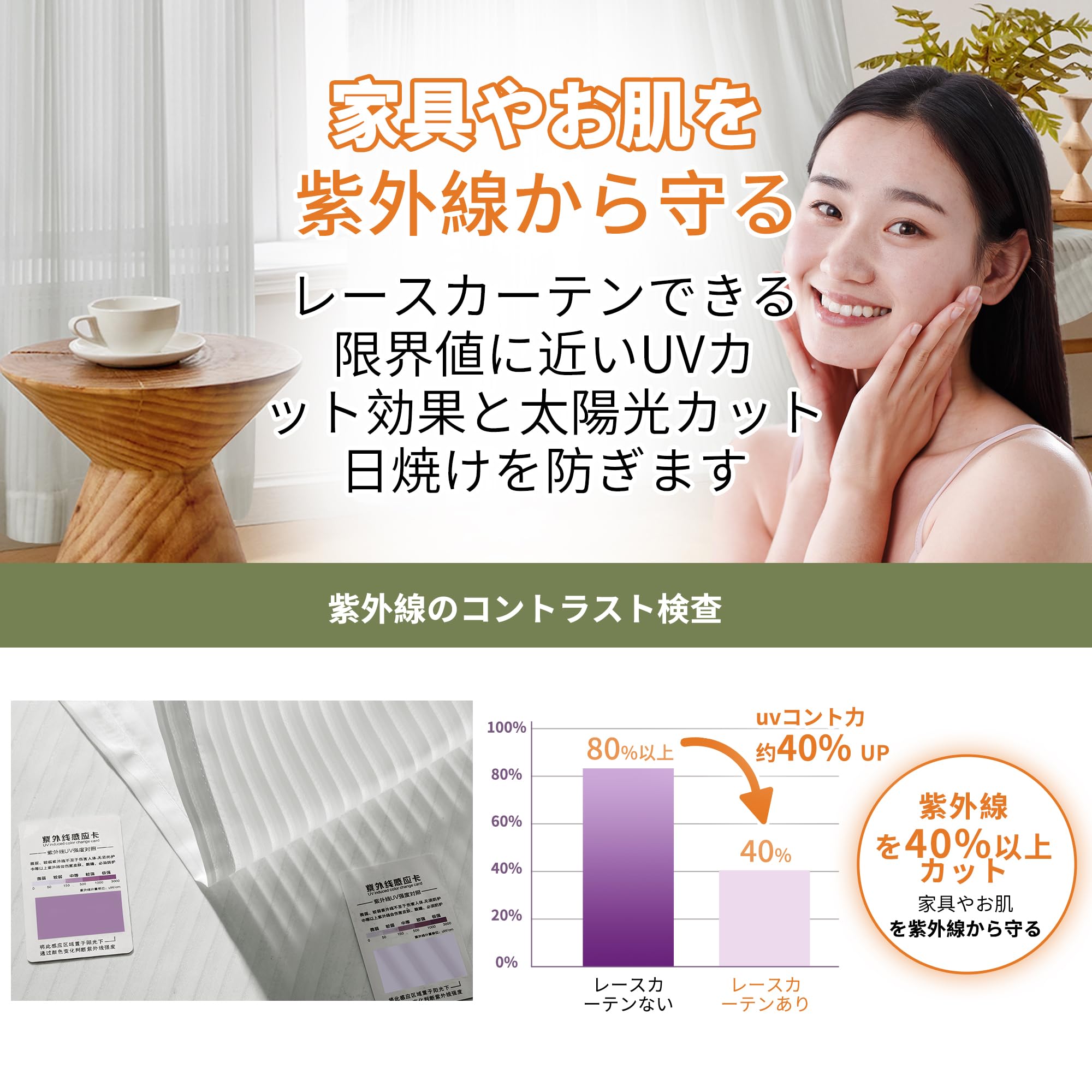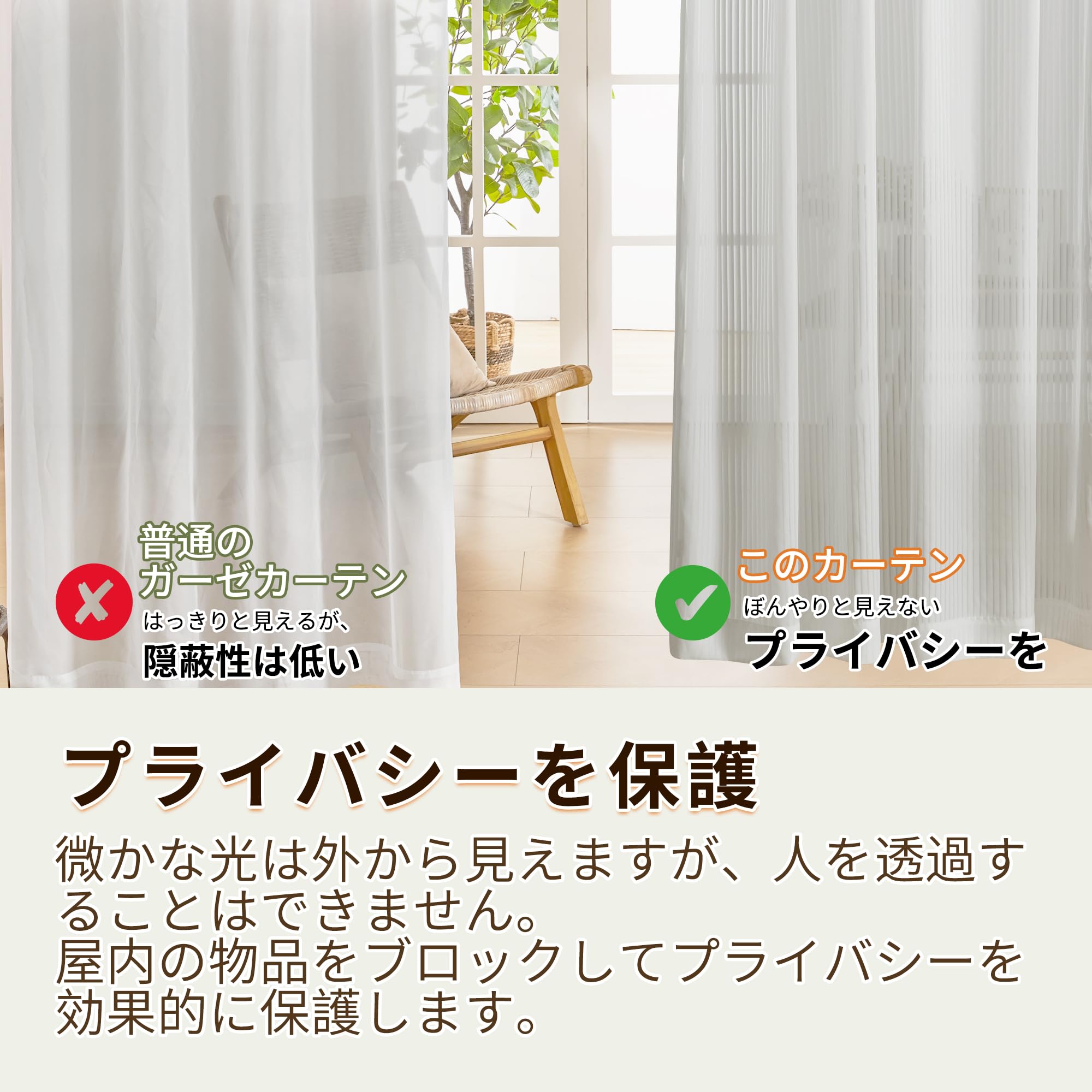 【サイズ】幅100cmx丈110cm。包装は 2枚のカーテンパネルを含みます。ポリエステル100%、高品質なレース生地で作られており、柔らかくて、風通しが良いです。軽やかなレース生地だけど、外から部屋の中を見えにくいです。