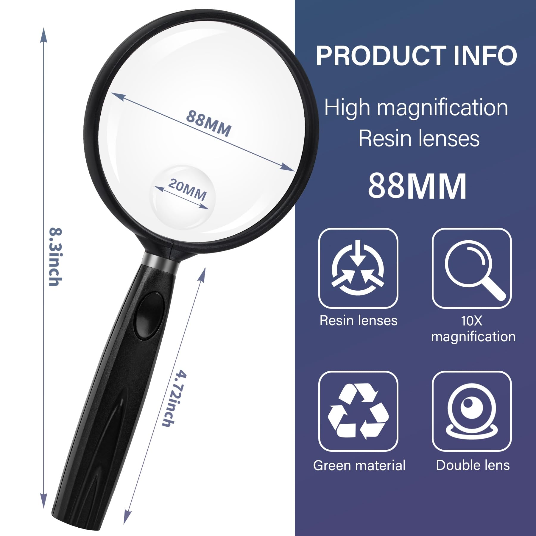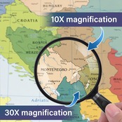 10倍拡大:文字を大きく見やすくなります,ご家庭での読書、地図、新聞、書類、図面、理科の実験、など幅広くご利用いただける虫眼鏡です。