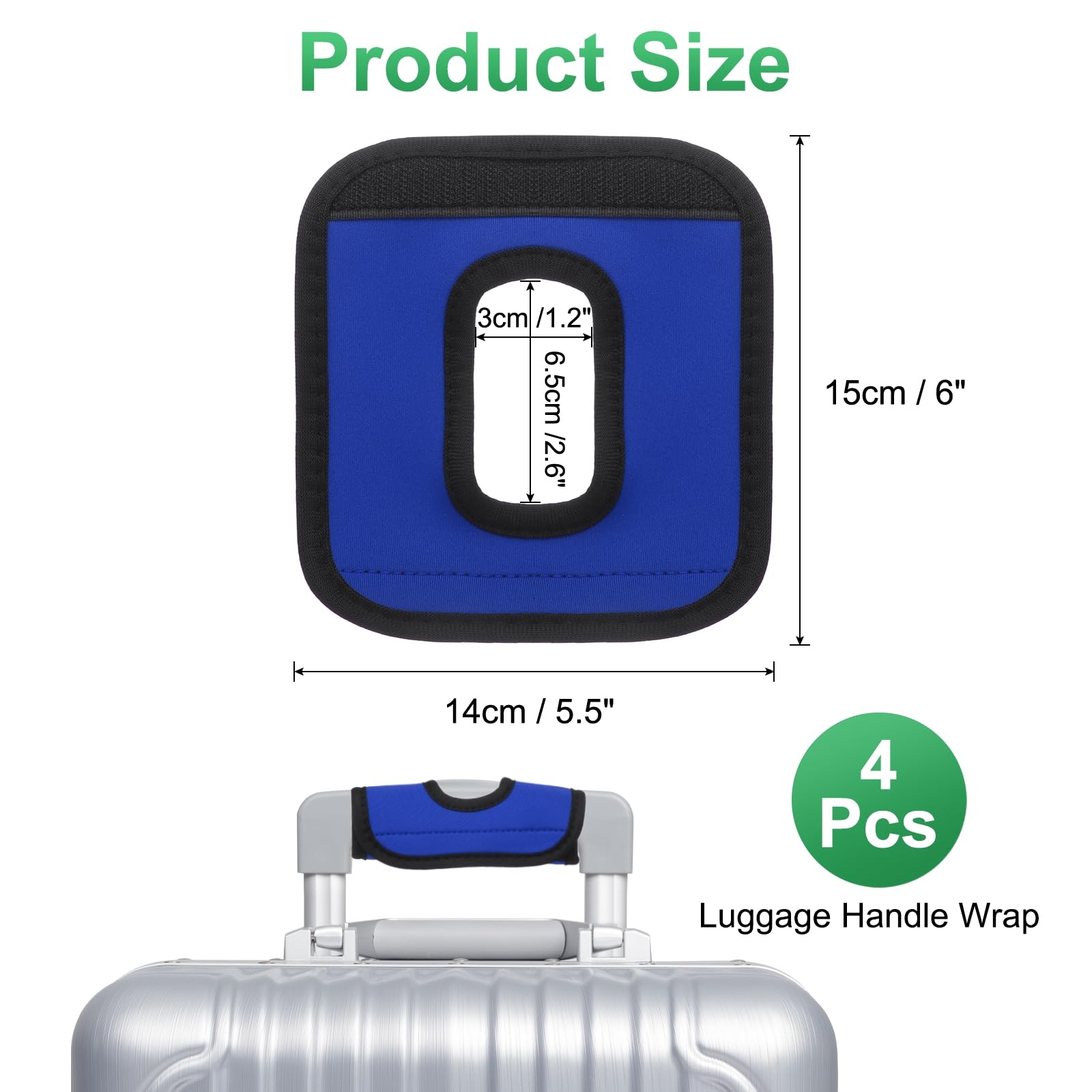 ラゲッジハンドルラップ: パッケージにはホローネオプレン製のハンドバッググリッ プカバーが4枚含まれており、各ラップのサイズは約15 x 14 cm / 6 x 5.5 インチ (縦×横)です。注文前にサイズを確認してください