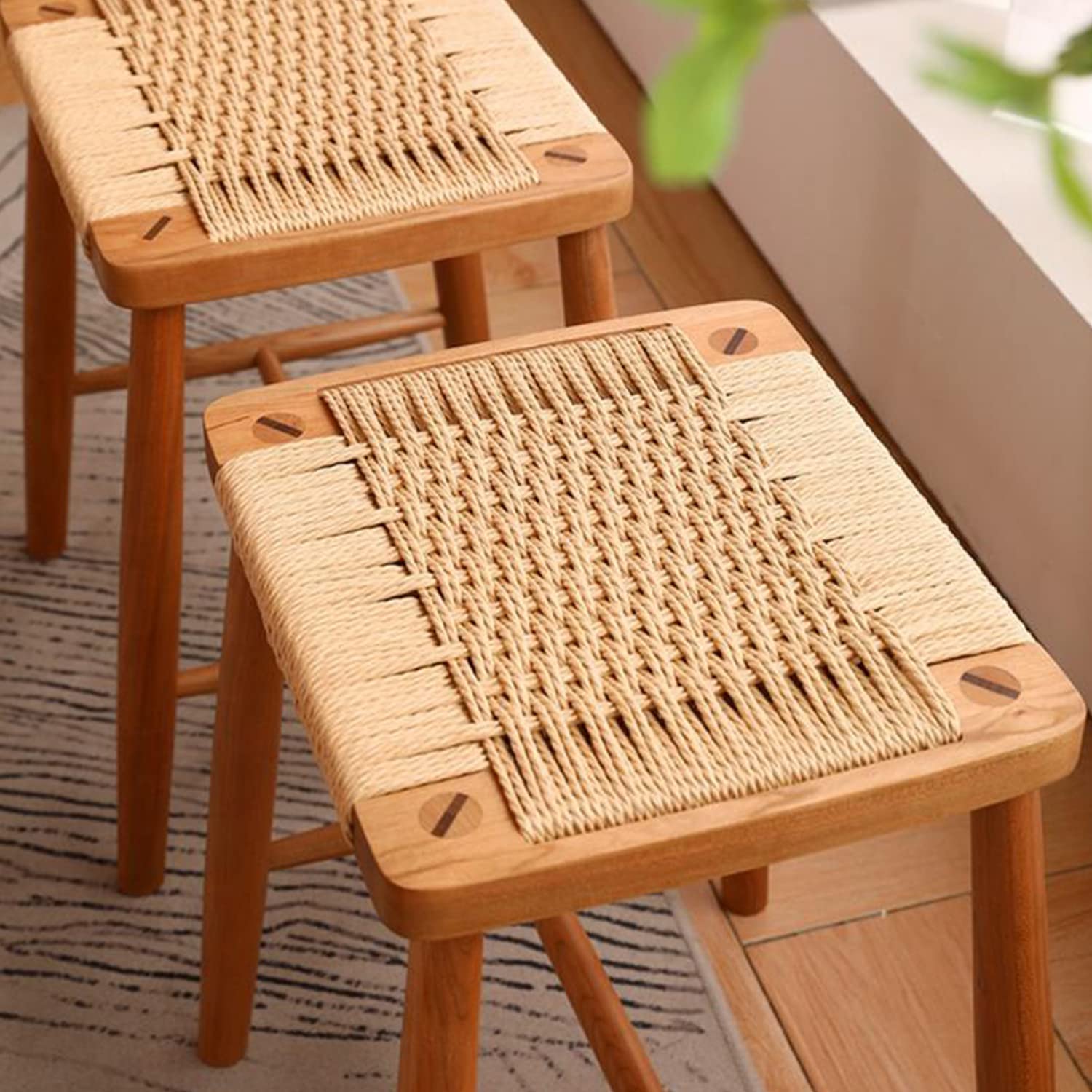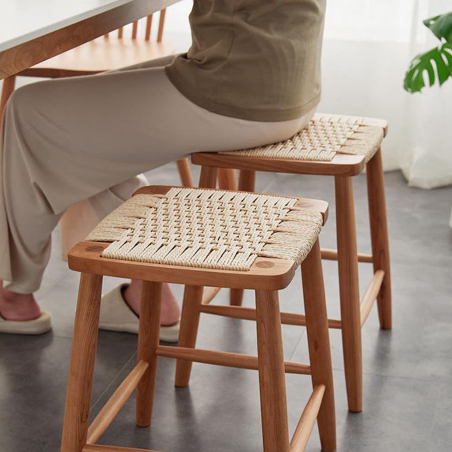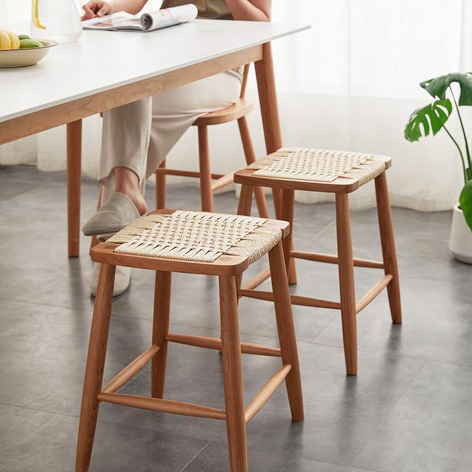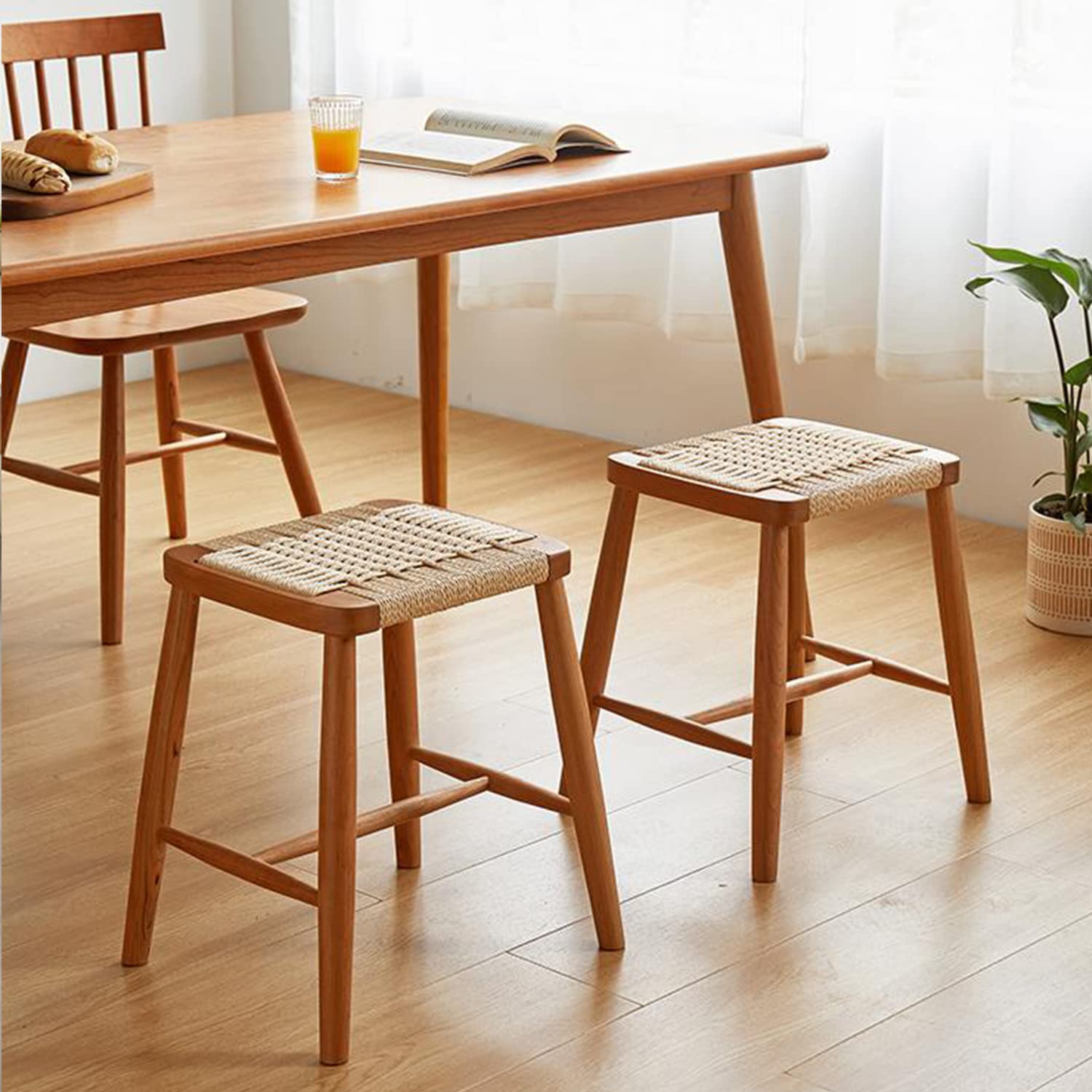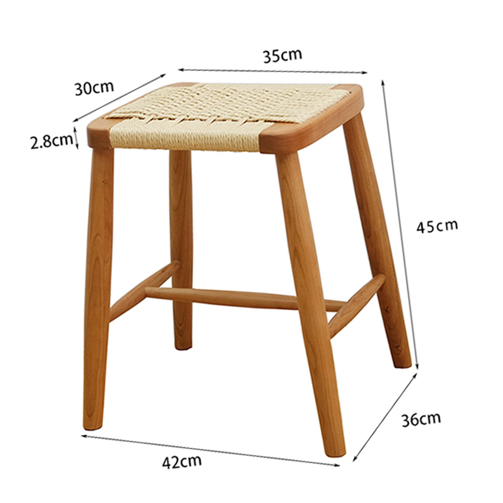 スツール 木製 四角 アメリカチェリー ラタン 籐 無垢材 チェア 木製 椅子 ウッドスツール ダイニングチェア リビングチェア 籐編み いす 頑丈 ラタン製 籐製 幅42cm×奥行36cm×高さ45cm 完成品 インテリア 北欧 コンパクト