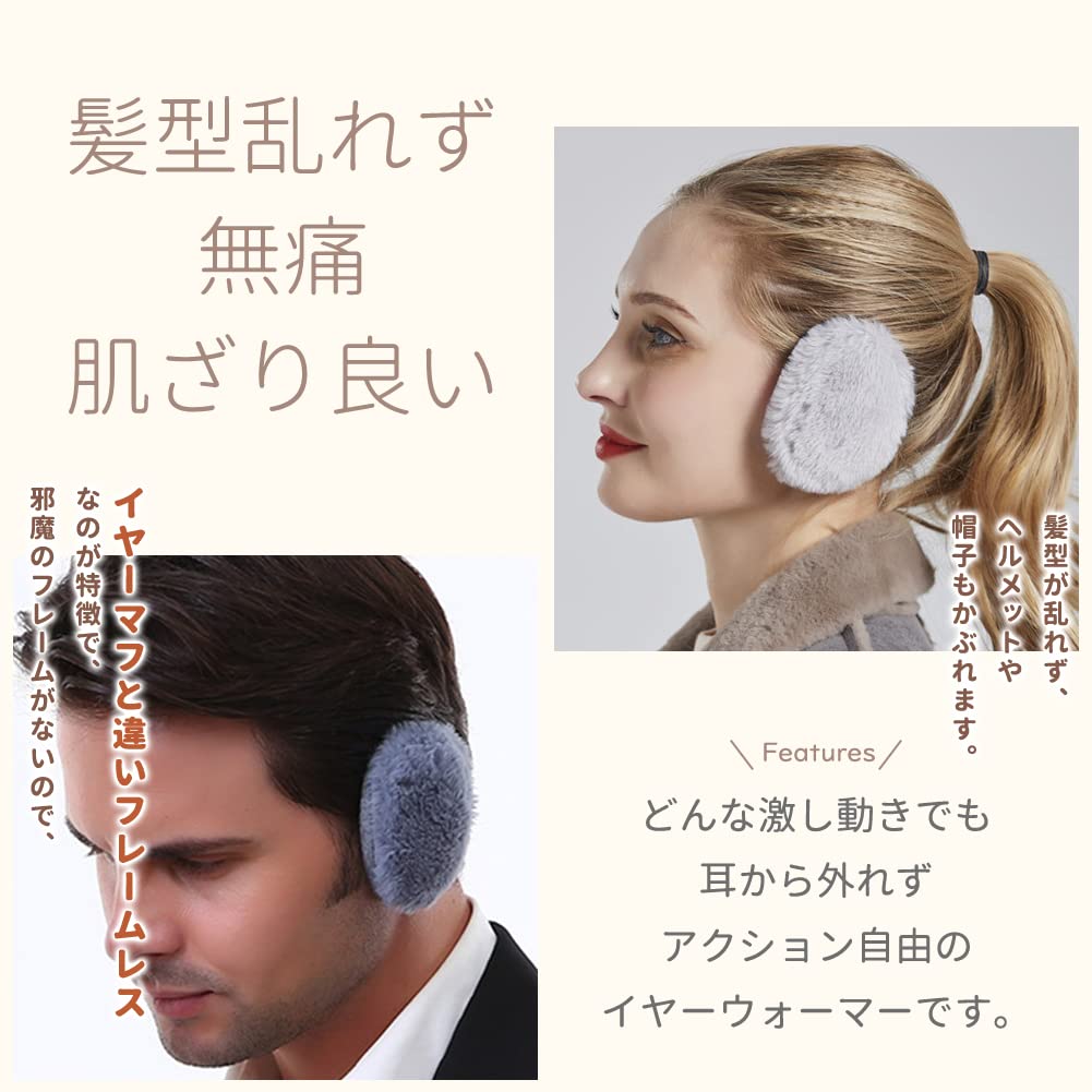 【厚みプラス・360度耳保温】当店の耳当て、外側はラビットファー素材を採用して、モコモコとしたボリューム感が見た目に可愛い上に、機能性も抜群です。内側はフリース素材で、柔らかい起毛仕上げの素材で、耳を360度を掴まって、外部の冷風が侵入せず、いつまでもあったかくに保温します。