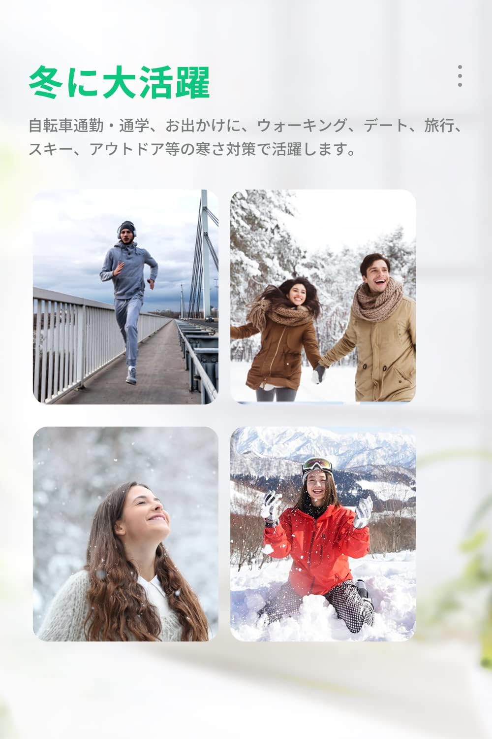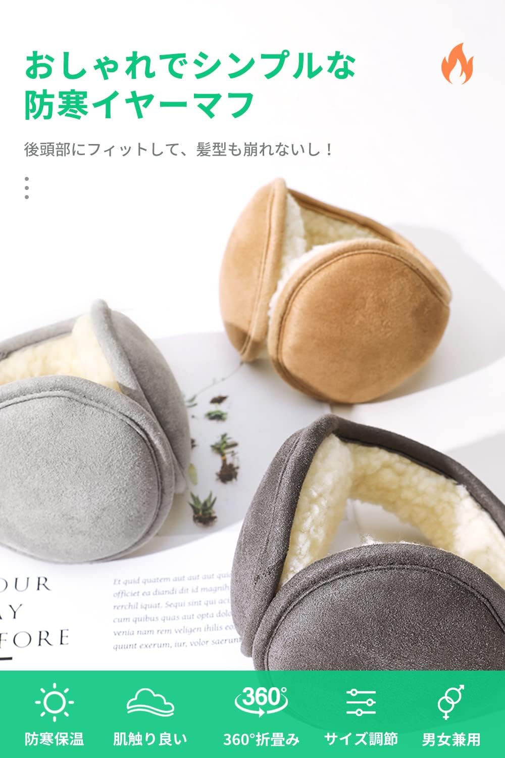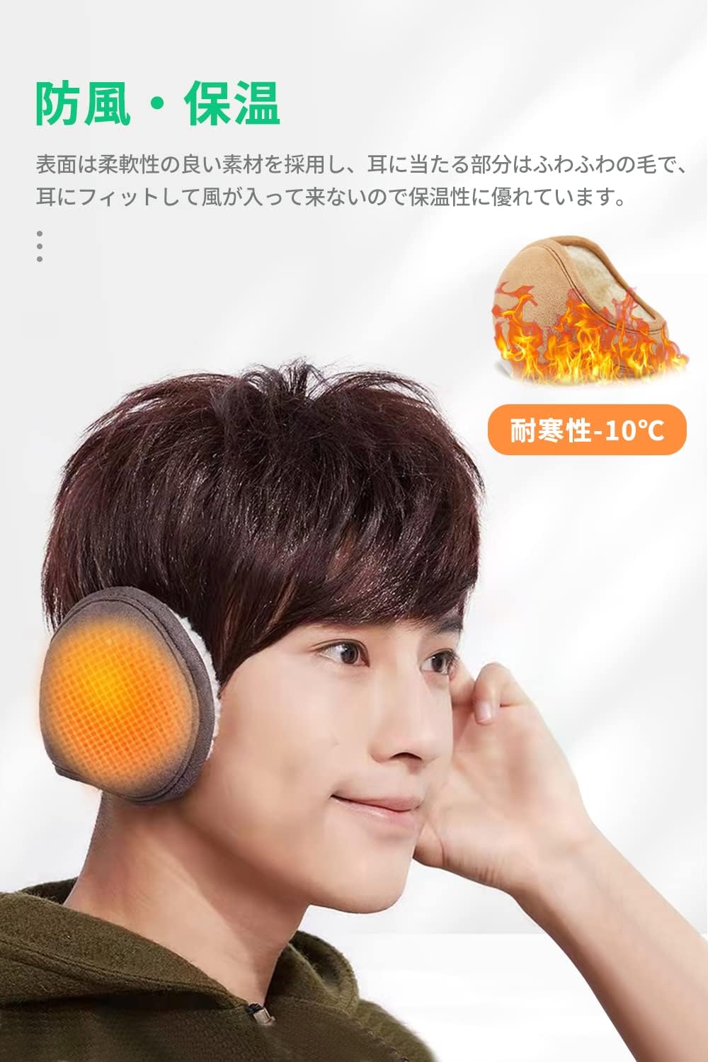 【防風・保温】 表面は柔軟性の良い素材を採用し、耳に当たる部分はふわふわの毛で、耳にフィットして風が入って来ないので保温性に優れています。暖かくて軽いので使いやすいです。冬の寒い時期は外では耳あてが欠かせない!
