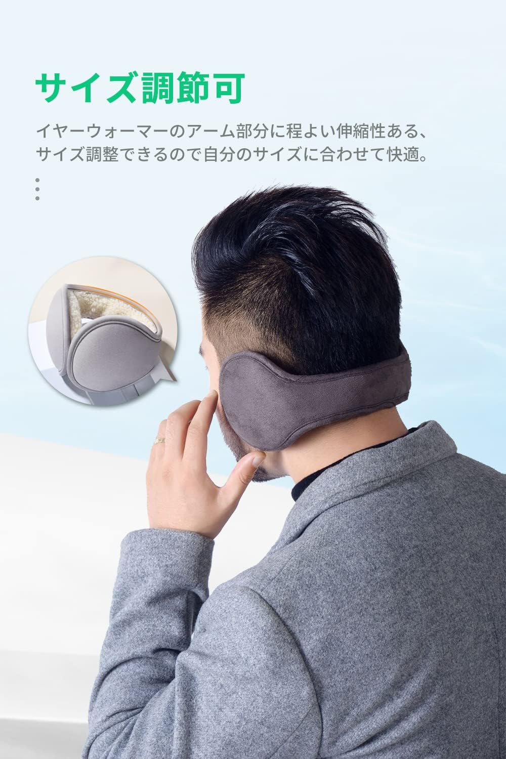 【サイズ調節可】 イヤーウォーマーのアーム部分に程よい伸縮性ある、簡単に装着でき、長さも調整でき、男性でも女性でもサイズ合わせに問題もありませんでした。 安定感があり、長時間着用で耳が痛くにくい!また、後ろからはめる形なので、髪型も崩れないし。