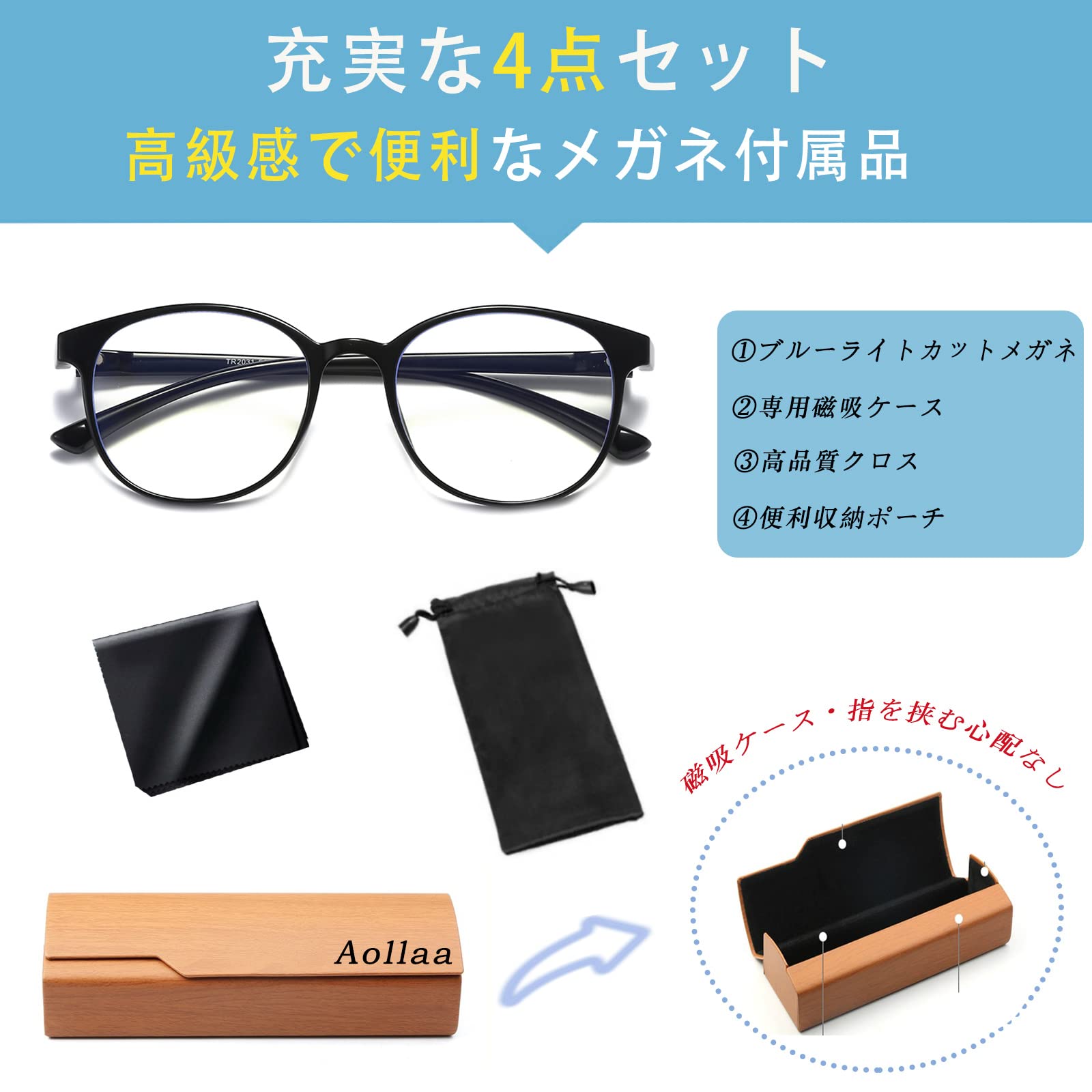 [Aollaa] 【TR90素材・軽量快適】ブルーライトカット眼鏡 伊達メガネ 度なしわずか 10g【紫外線カット& uvカット】パソコン用pcめがね だてめがね メンズ レディース 学生 子供 丸メガネ ボストン 母の日プレゼント ギフト(ブラック)