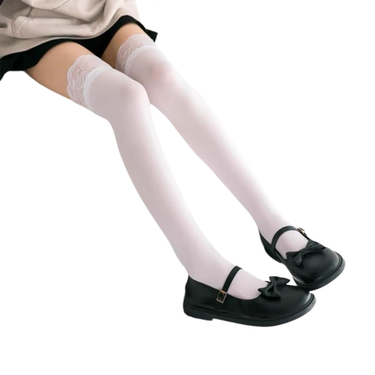 [POPULAR] ニーハイソックス ガーターストッキング 可愛いハイソックス cosplayや制服用 美脚 滑り止め付き 伸縮性あり レース付きストッキング 厚手のソックス 3色から選べます 四季を通じて使える